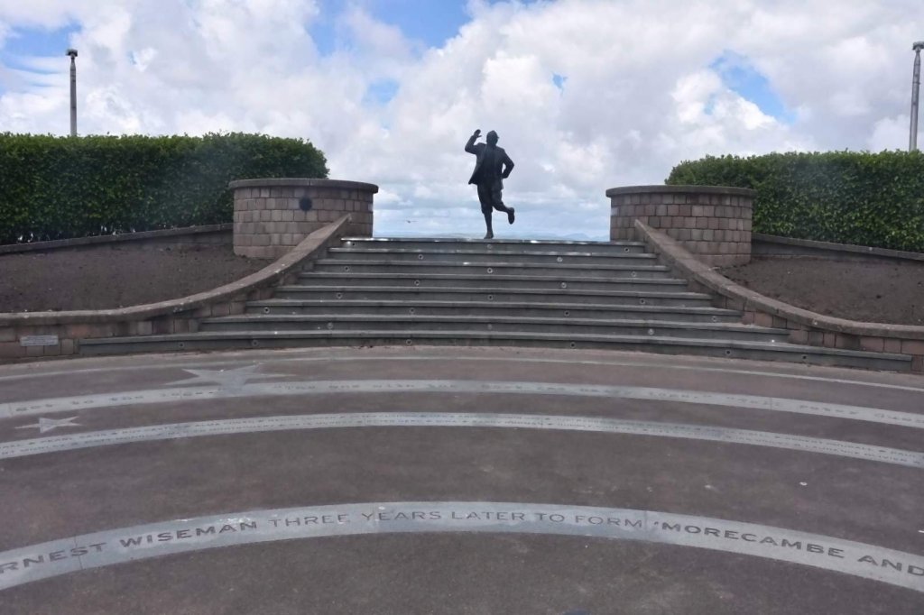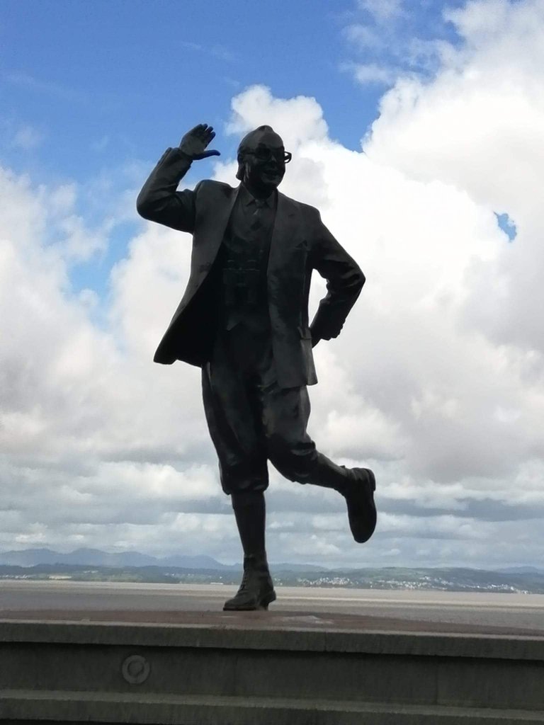 Morecambe is not too busy. We wander along the promenade. The tide is out. We spot the odd location that we saw in The Bay too. It’s not a pretty place and could do with some investment but the bay is impressive.