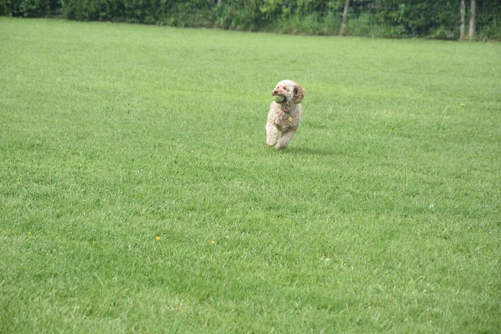 On the campsite we stop at the dog park and give Nala a run around. She’s been on her lead all day. Throw a ball and she’ll chase it down like mad. We manage to wear her out running up and down the hill with the dog park to ourselves.
