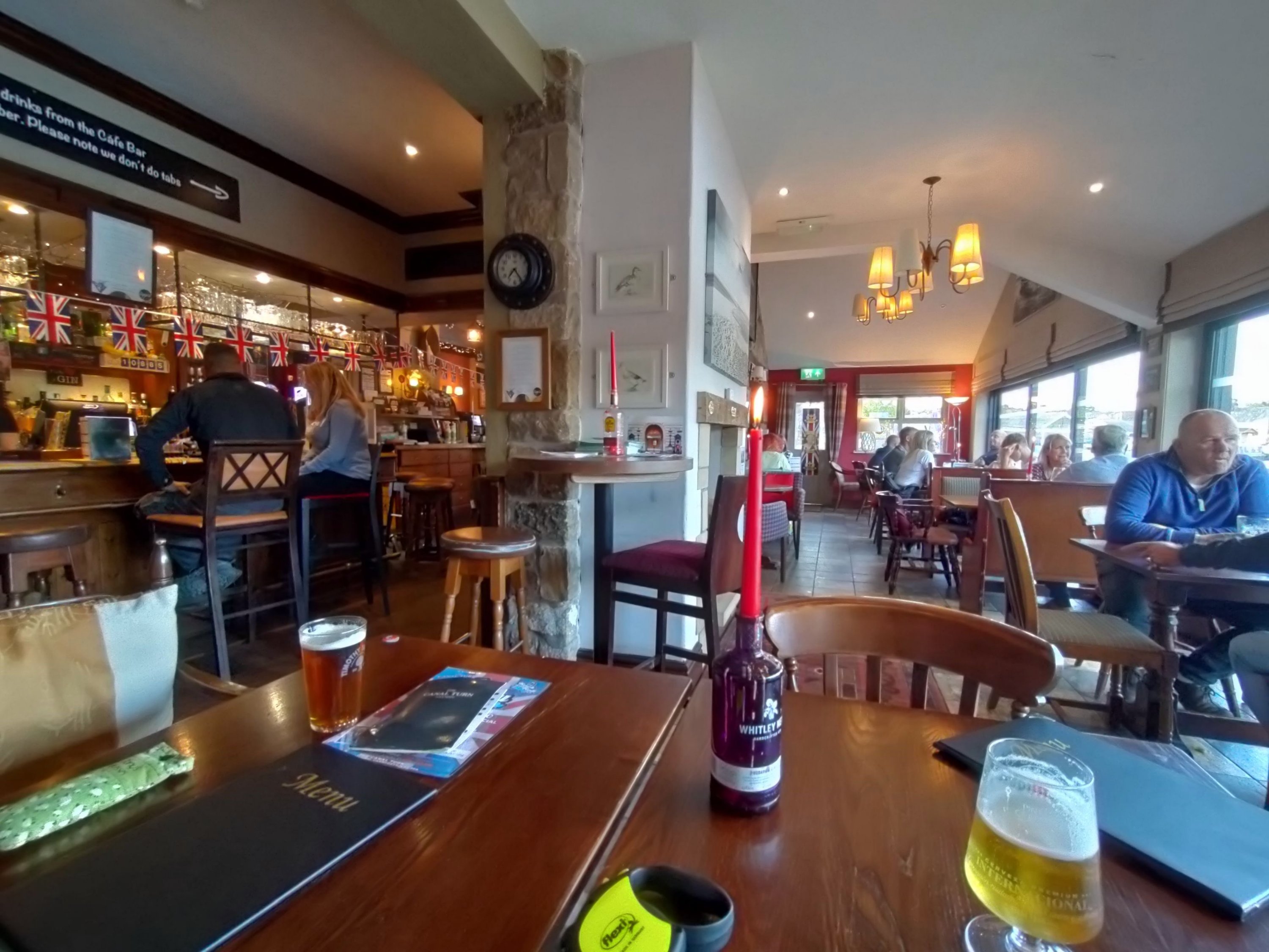 Early evening we wander out for a visit to the Canal Turn pub. This is left out of the site along the tow path towards Carnforth rather than right to Bolton-le-sands. It’s a beautiful evening now with blue skies and sunshine. Nala enjoys chasing the odd pigeon and crow.