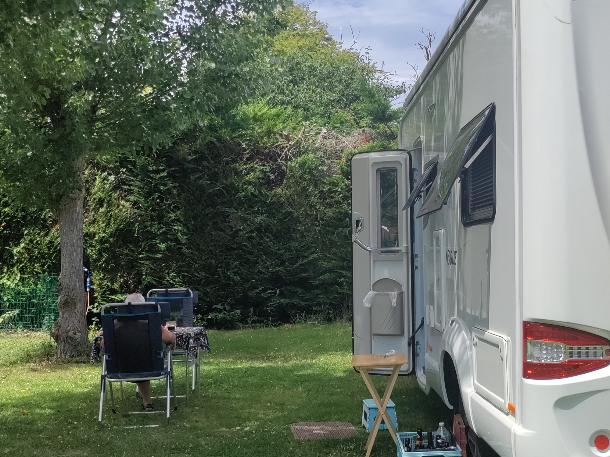 Our final day here on Camping de 2 Rivieres is another quiet one. The weather is glorious all morning and afternoon so we spend most of the day sitting under the trees hiding from the sun.