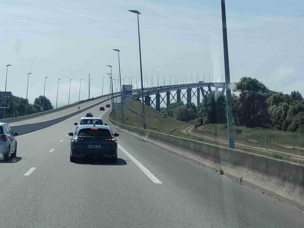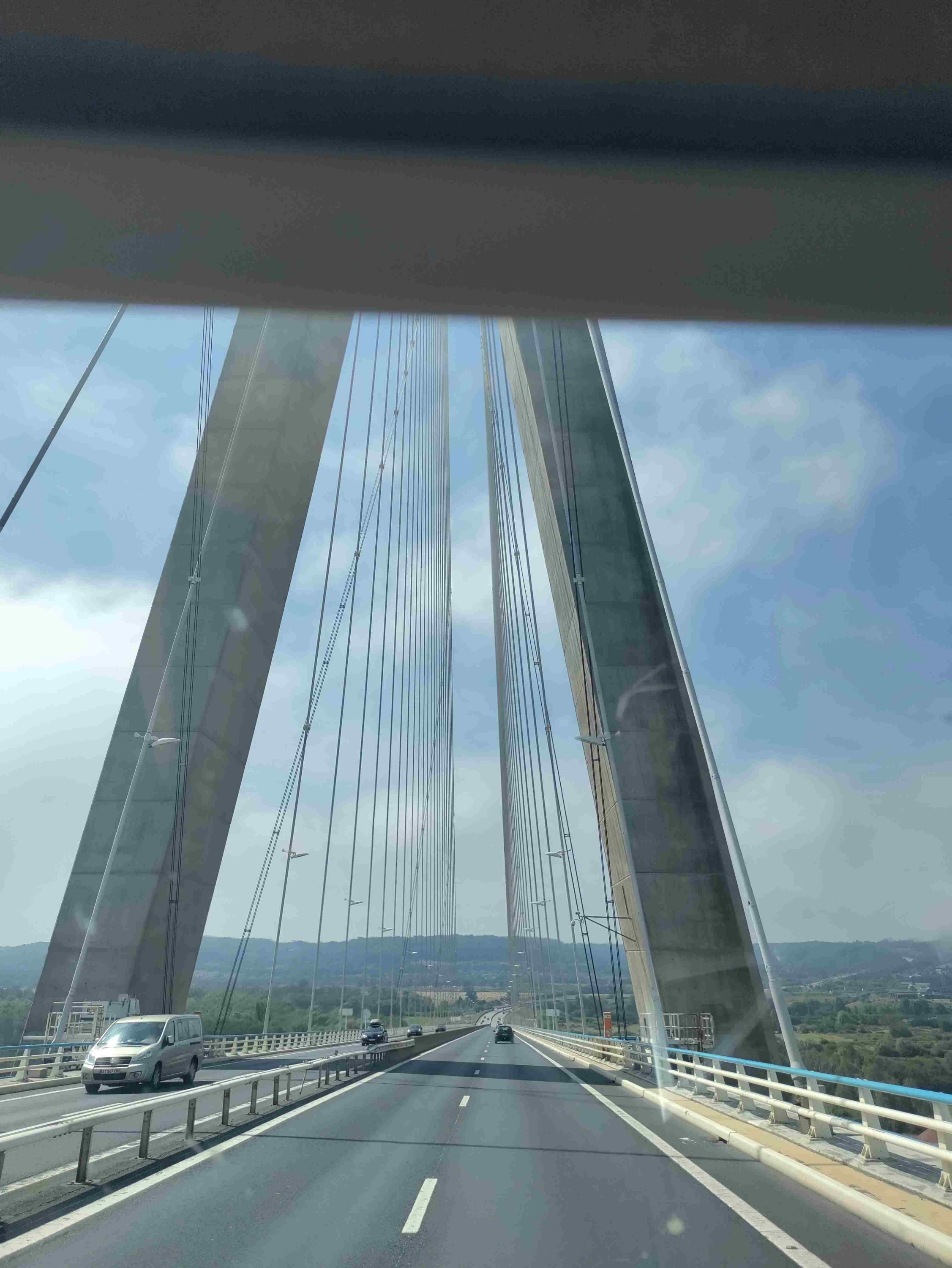 We journey on toll roads today for speed and to avoid winding and hilly roads. Travel over some huge humped bridges on the way, one so high it was covered in cloud!