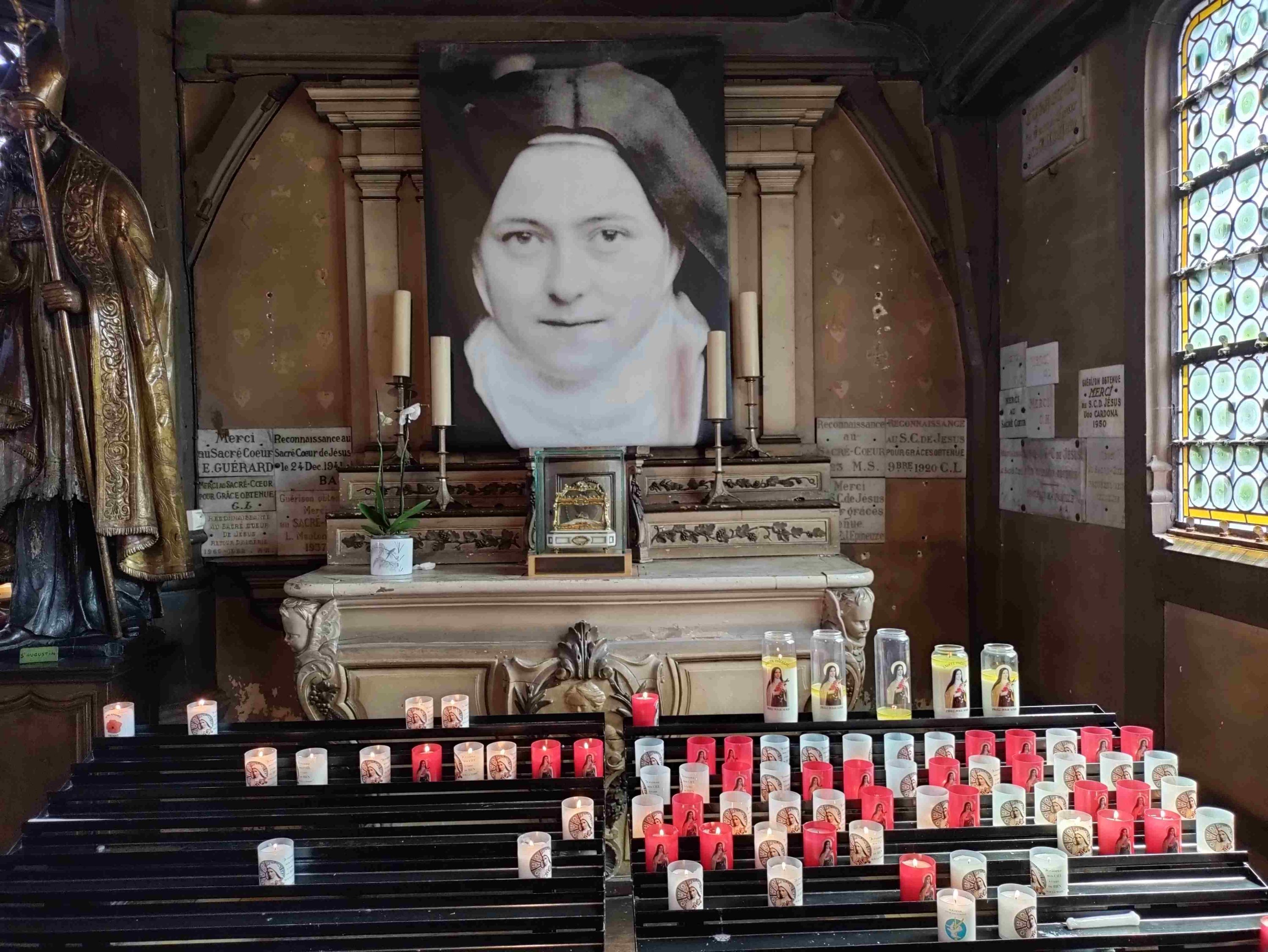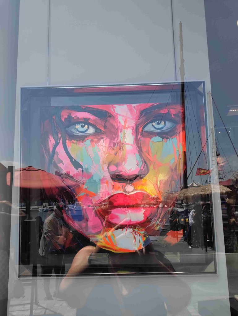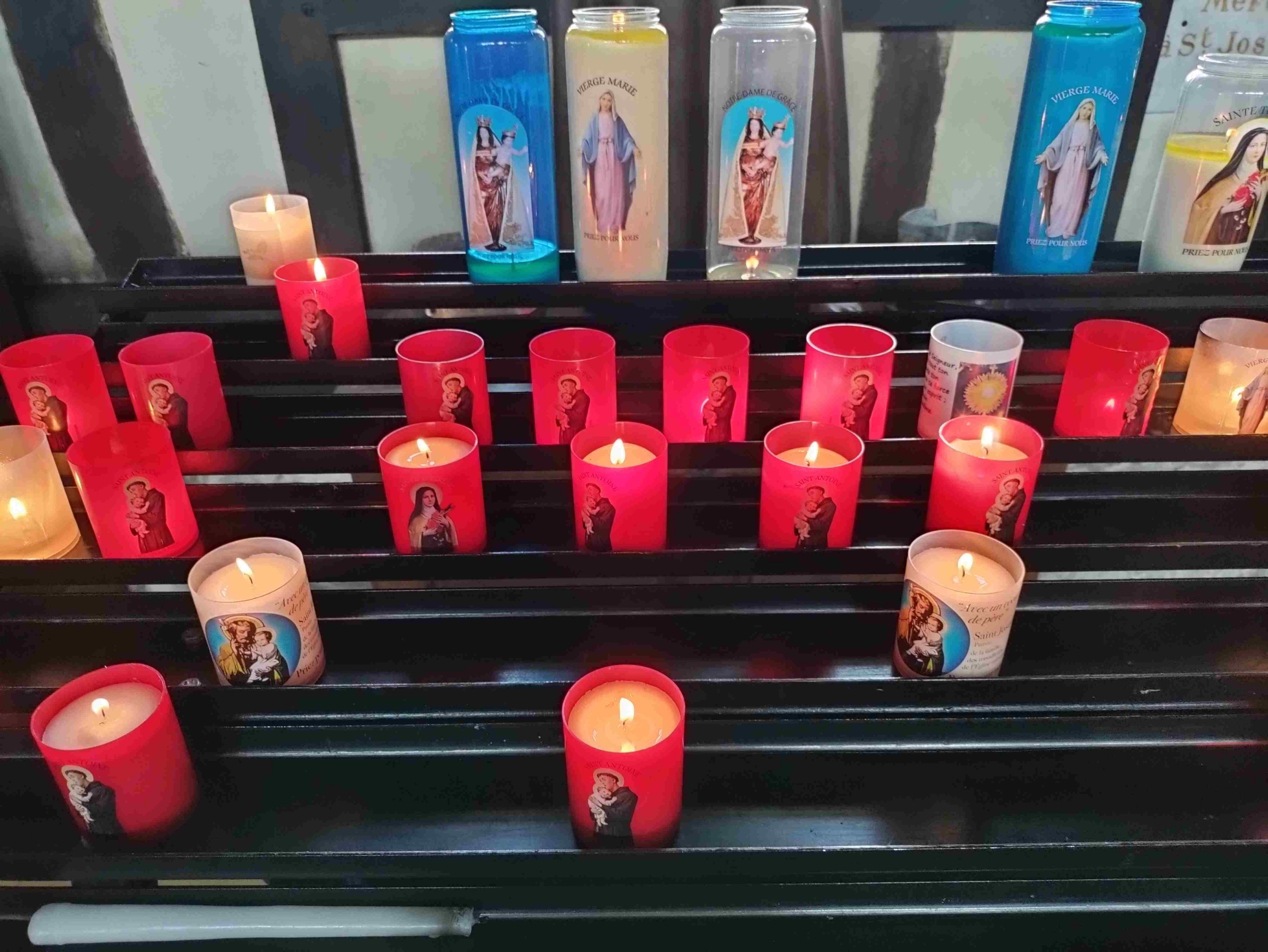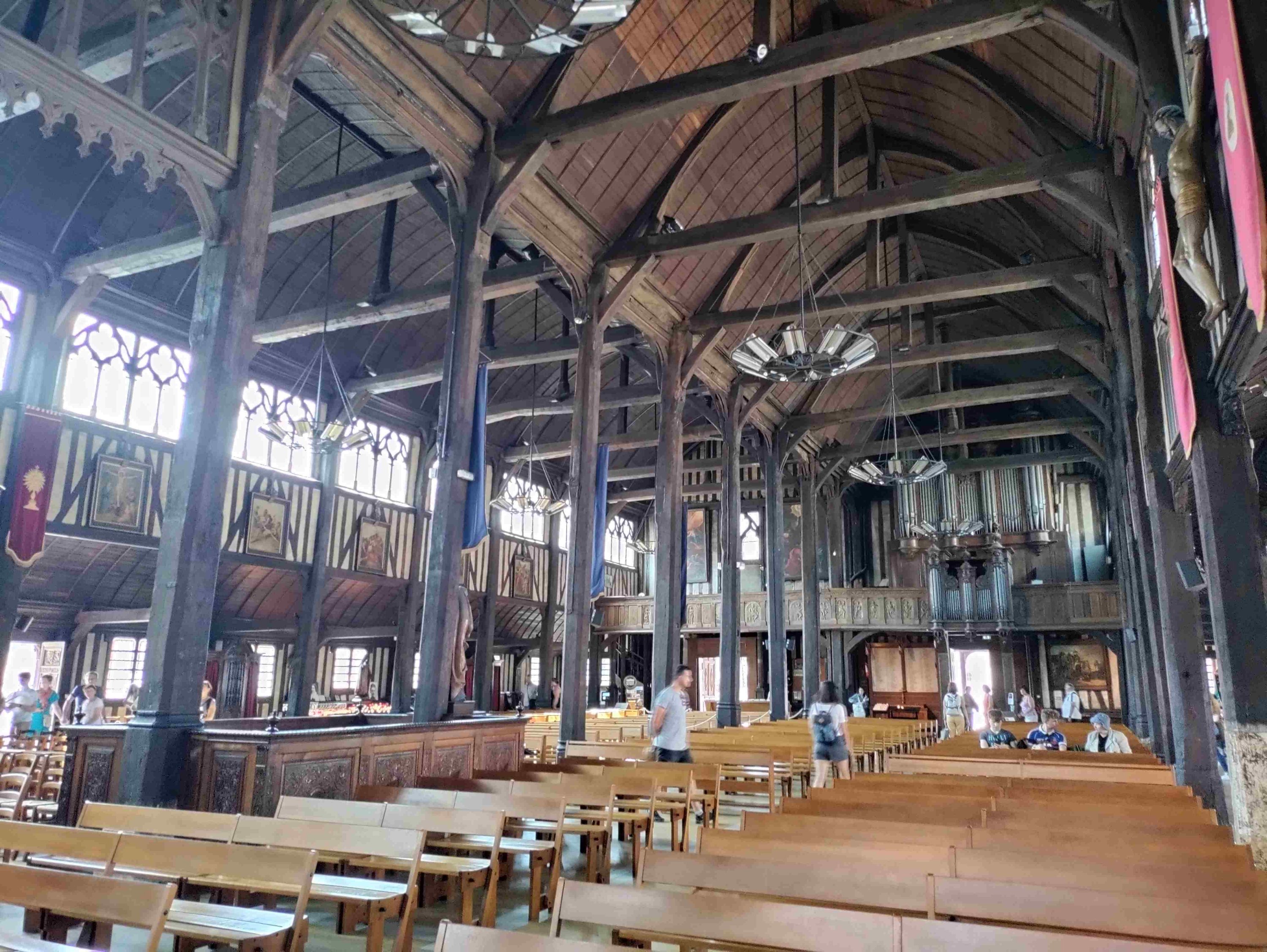 After a wander around spotting some lovely art we visit the largest wooden church in France, St Catherine’s, which has been standing since the 15C replacing a stone built version destroyed in the 100 years war. It’s lovely inside and has many candles burning in lots of small altars. T is happy to light one to St Anthony his fave and namesake.