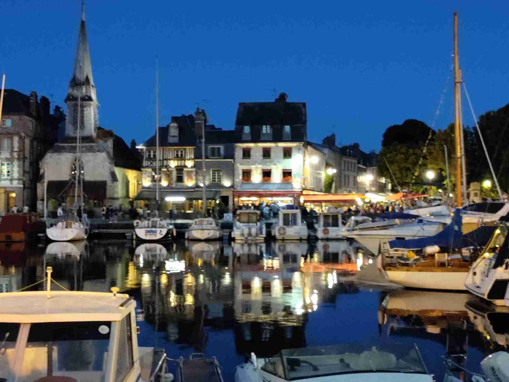 Arrive at the Aire in Honfleur which is rammed and basically a huge carpark with a few pitches with electricity. We are told by a local that it’s probably full but we have a look and find a pitch with easy access! Feeling lucky as it’s Bastille Day after all. No power available but that’s ok as we can use gas for the fridge and 12v power for the rest. RV’s are parked like sardines but each pitch is marked which helps a lot and it’s so handy for the town and only €12 for 24 hours.