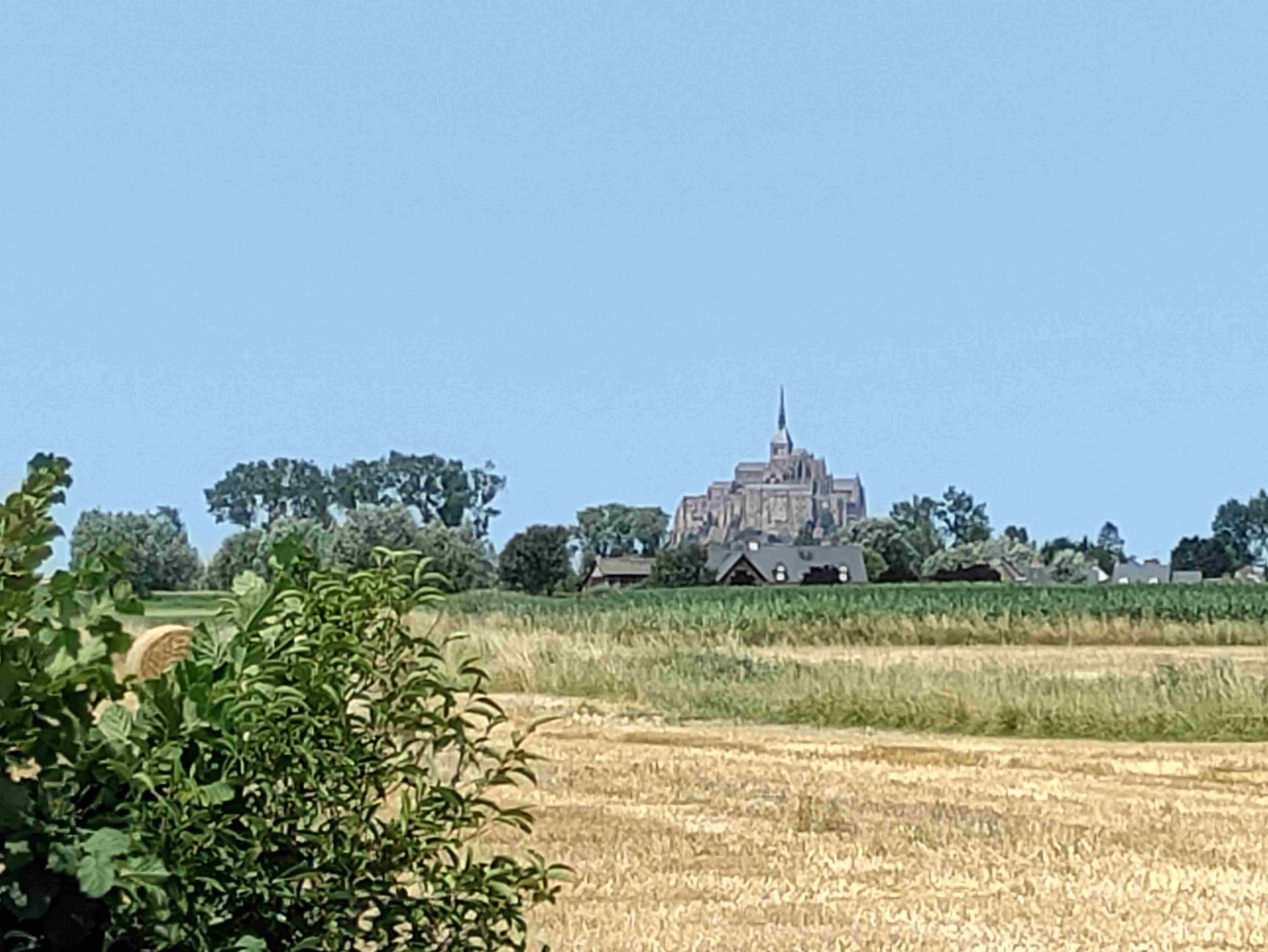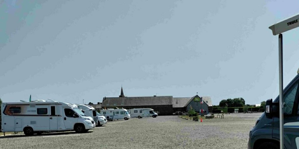 You pay on entry and get 24hrs for just over €15. The machine issues a ticket with an exit code. All very efficient. There is a dump for grey and black waste but no toilets or showers . What it does have is a view of Mont St Michel, it’s within cycling distance and it’s a nice rural spot too. Each pitch has just enough room for a van and awning.