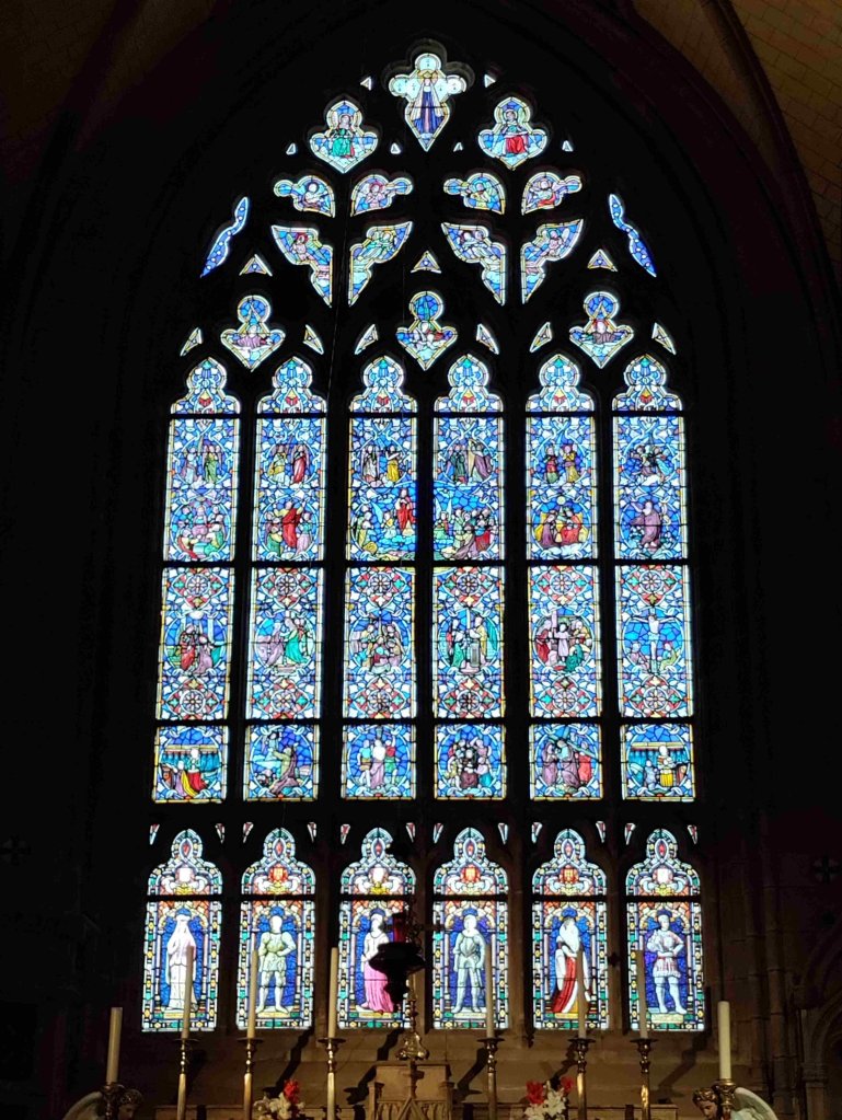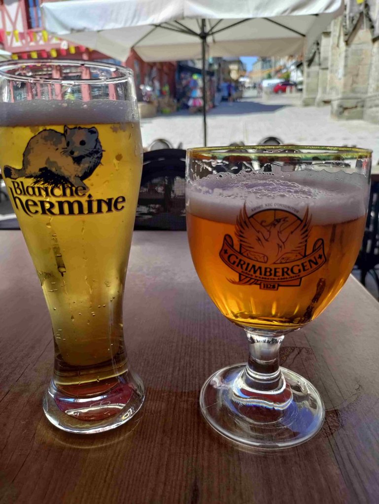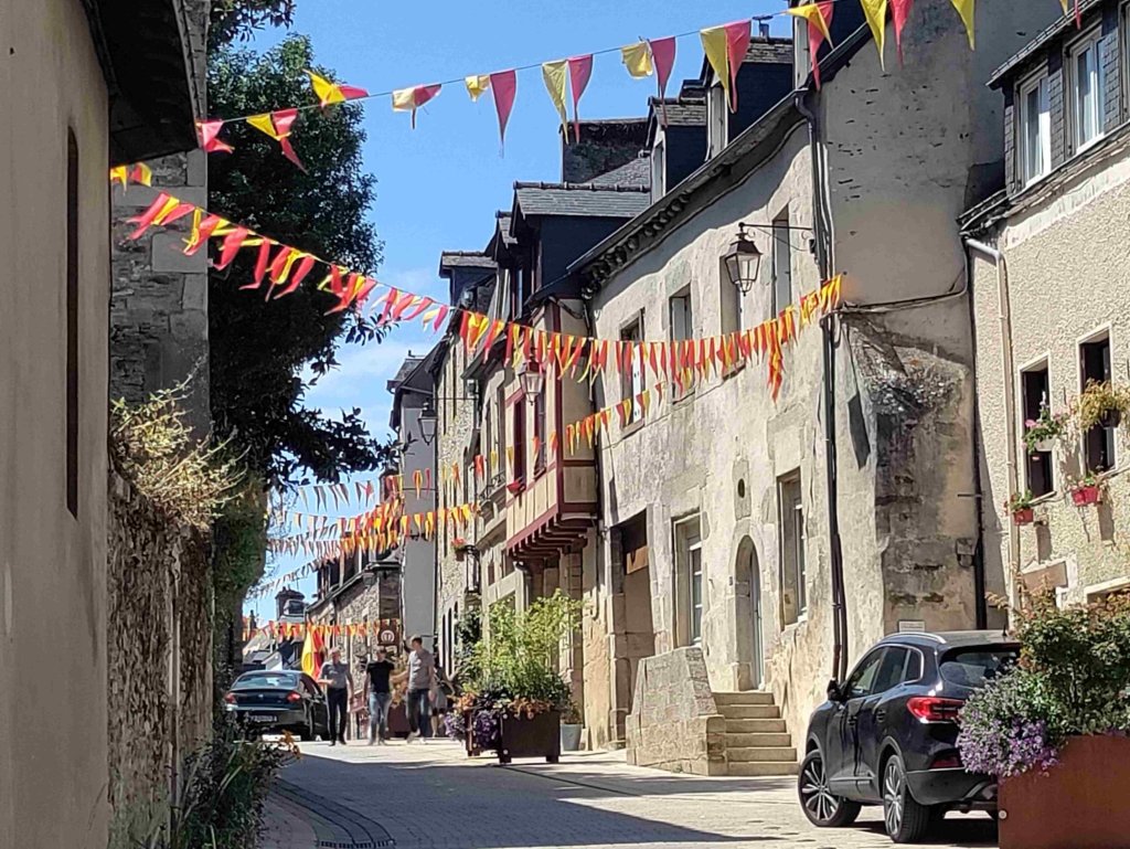 The village is chocolate box pretty with flowers growing everywhere. The local church is worth a visit and of course we light a candle. We enjoy a beer in the square before walking back to the van.