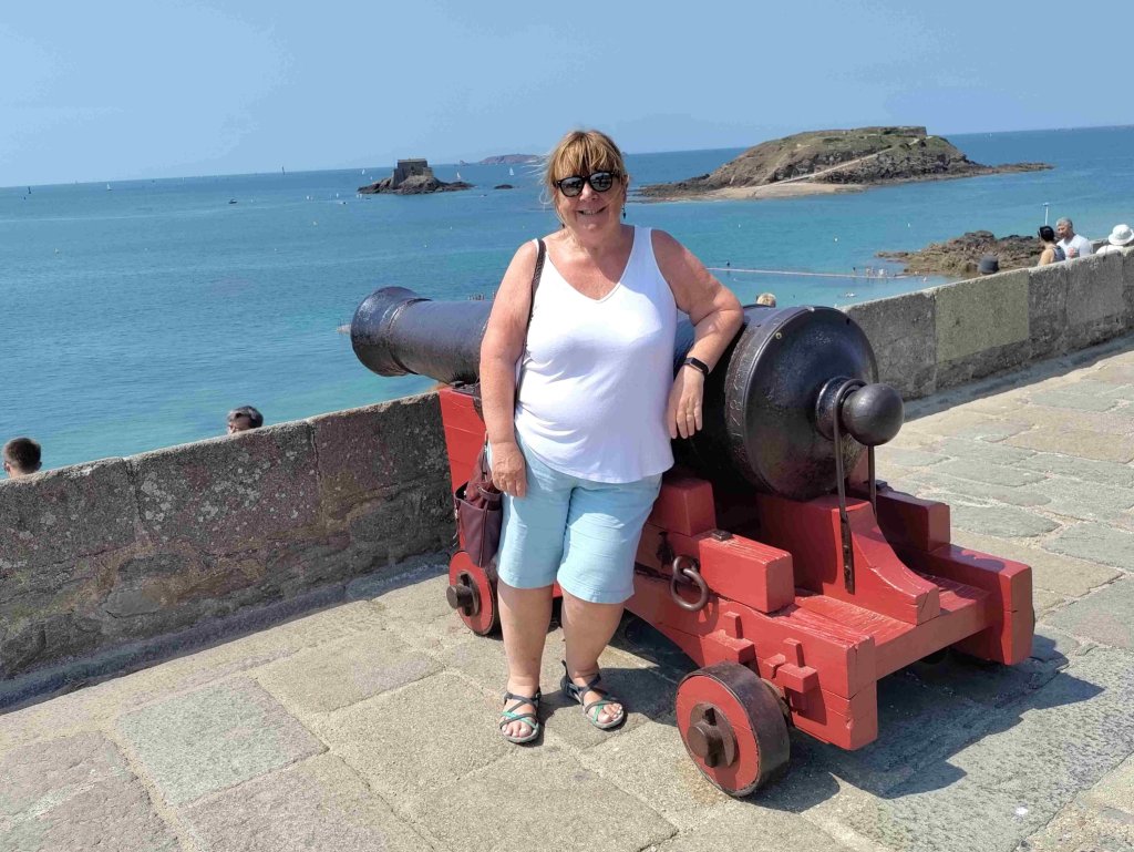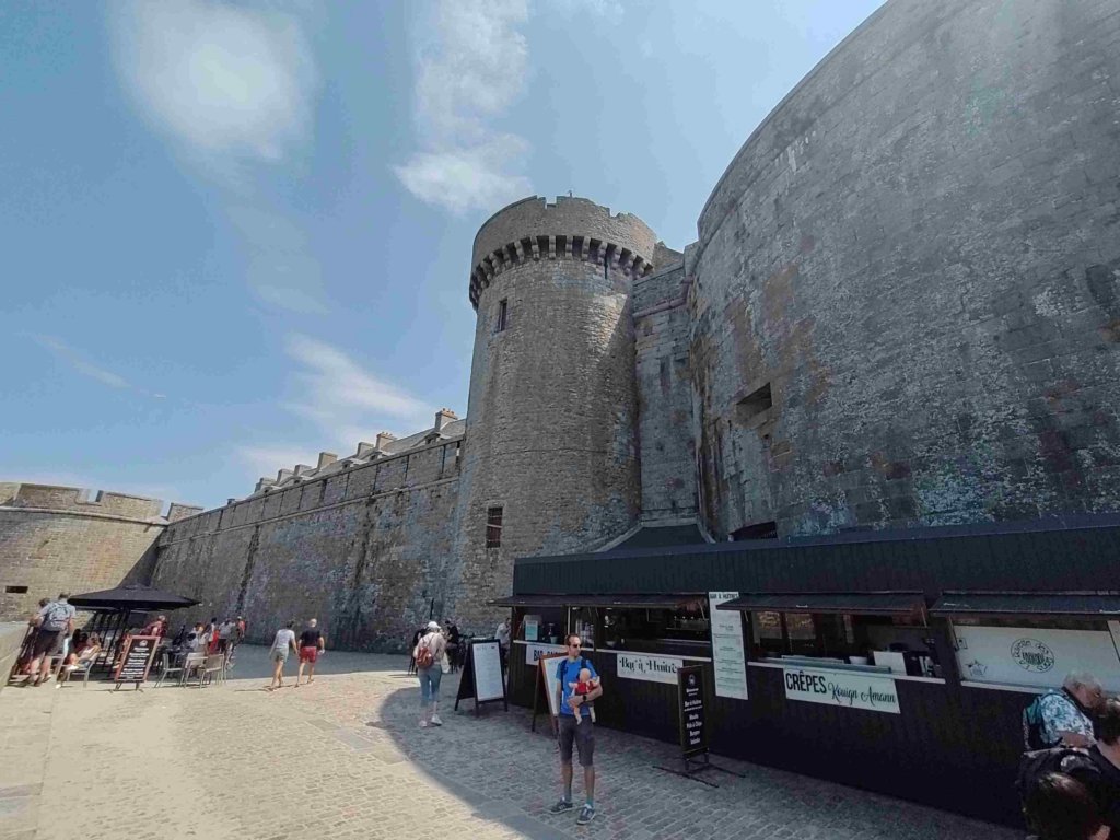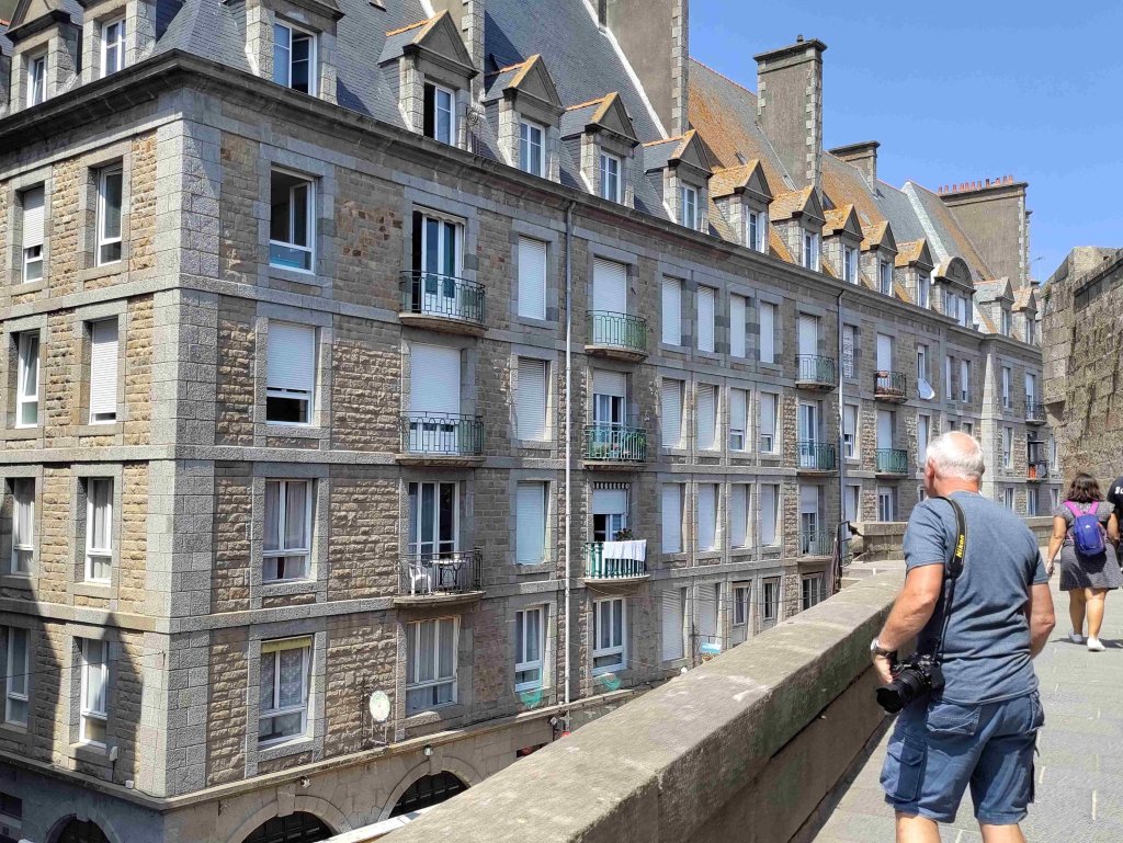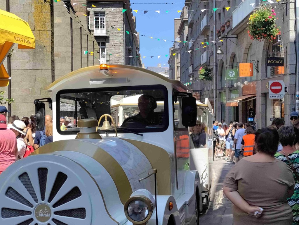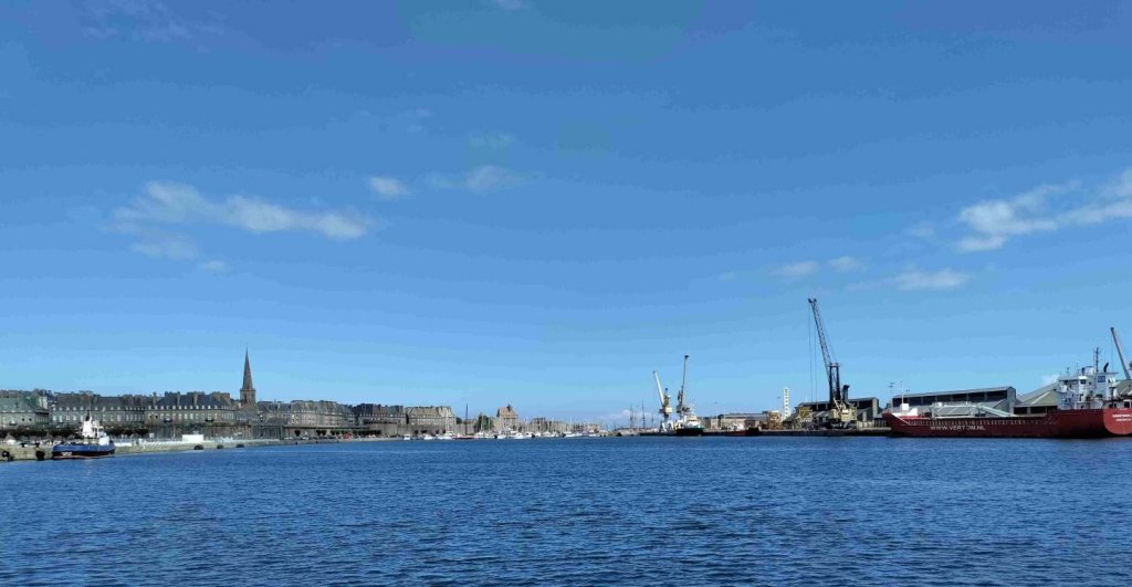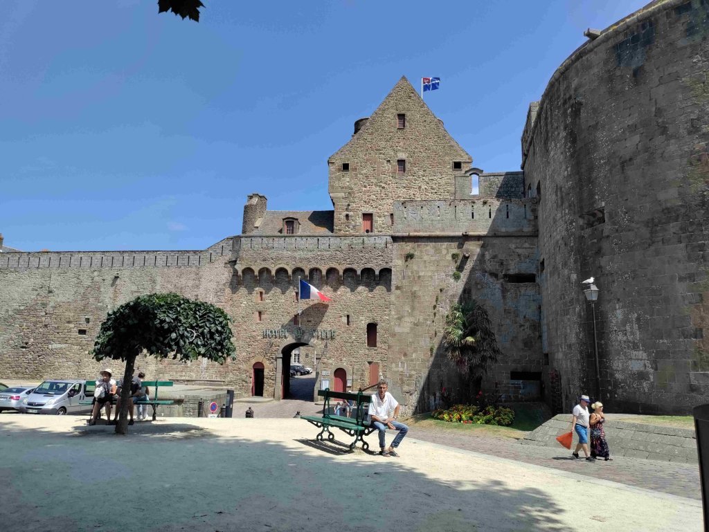 The walls surrounding the old city are now visible. This was once the haven of corsairs, basically pirates approved by the king. The city was badly bombed in WWII but restored after the war. It’s a pretty place with narrow cobbled streets and flowers and bunting everywhere.