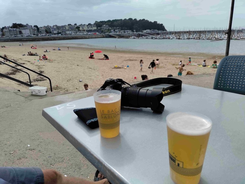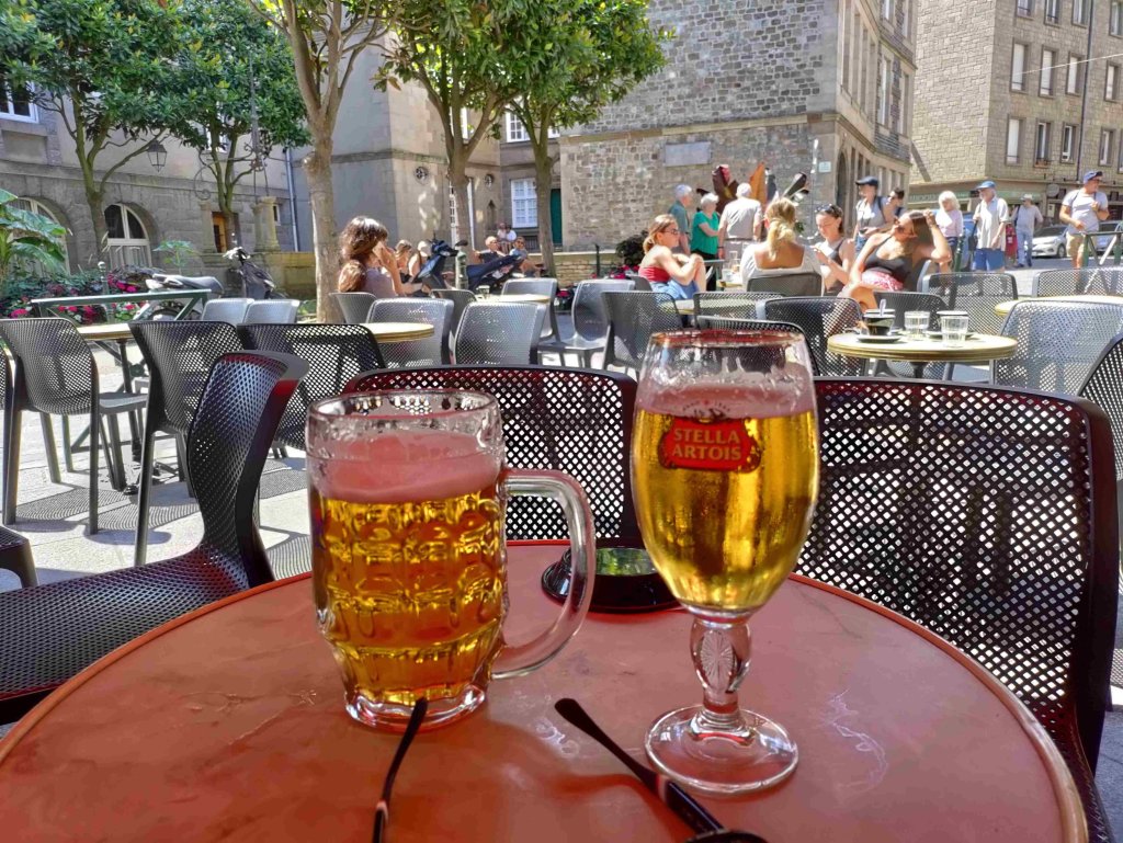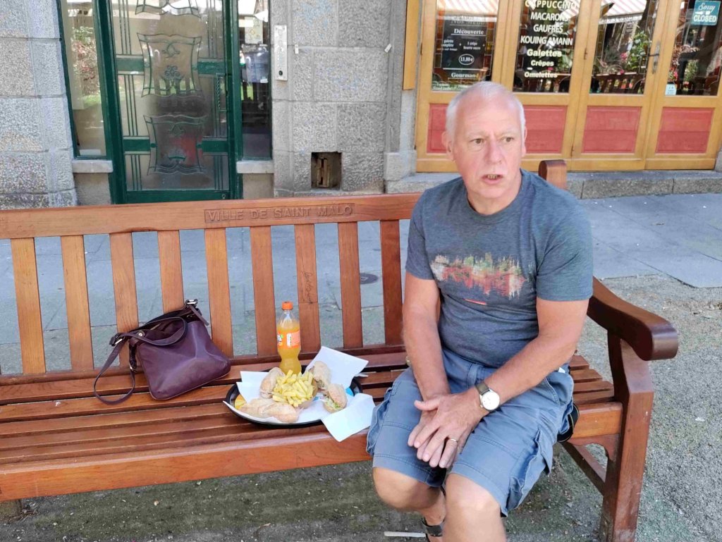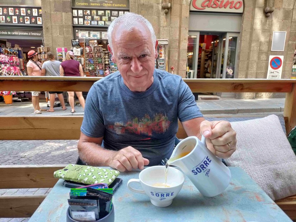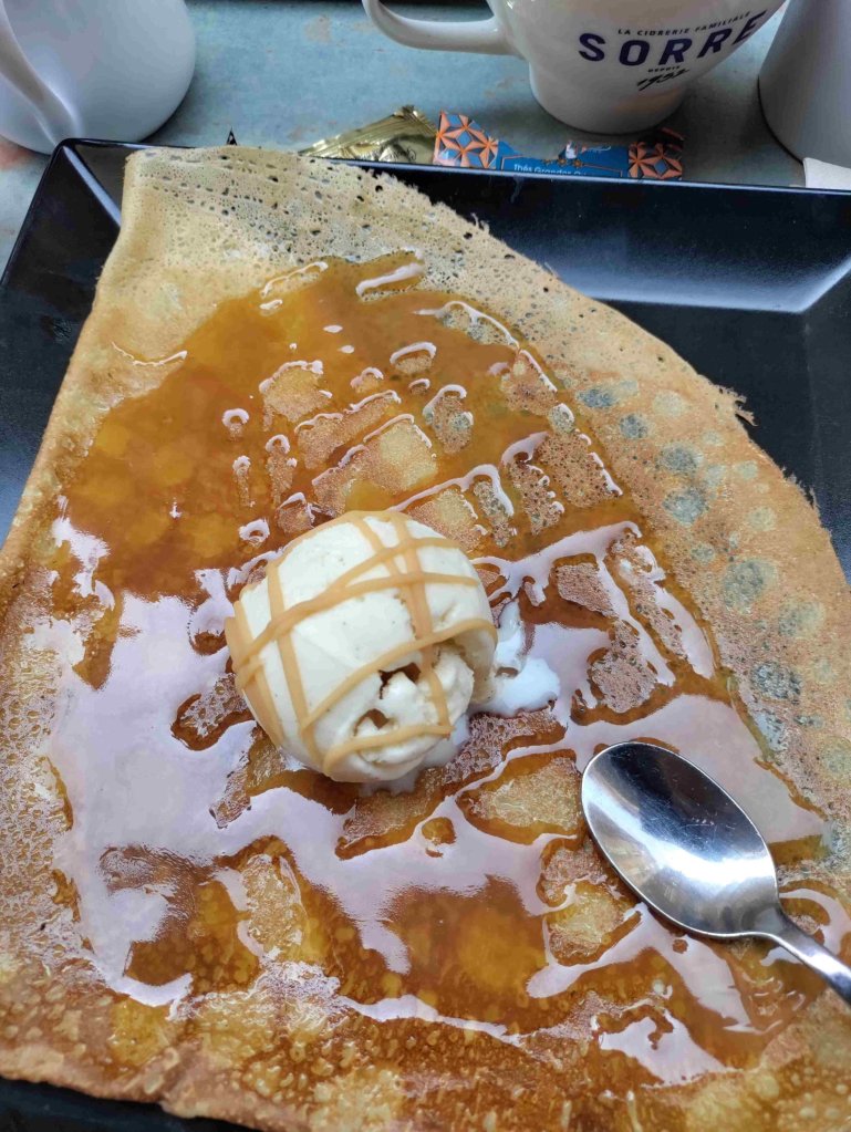 A naughty stop for crepes and a drink is very welcome before the walk back to the campsite. T managed a large carafe of the local cider to wash his down and I have a pot of Darjeeling tea.