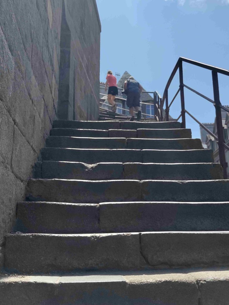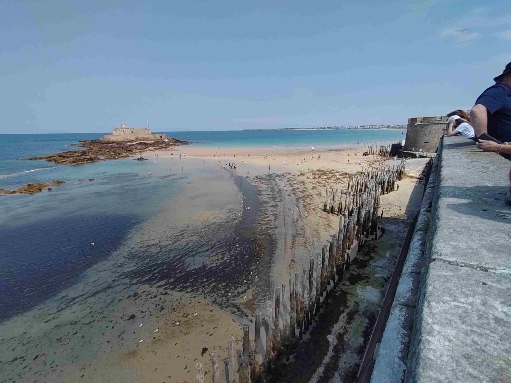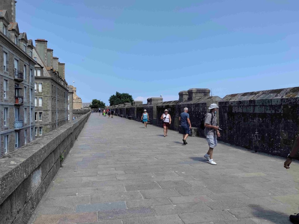 Up onto the walls of the city for great views of the port and the city. We walk around glugging a large bottle of icy water as it’s exposed and hot. On the beach there’s an pretty amazing looking Lido with a high diving board and lots of people having fun, we’re wishing we had our cossies with us. There’s a bit of up and down at various gates until we are back where we started.
