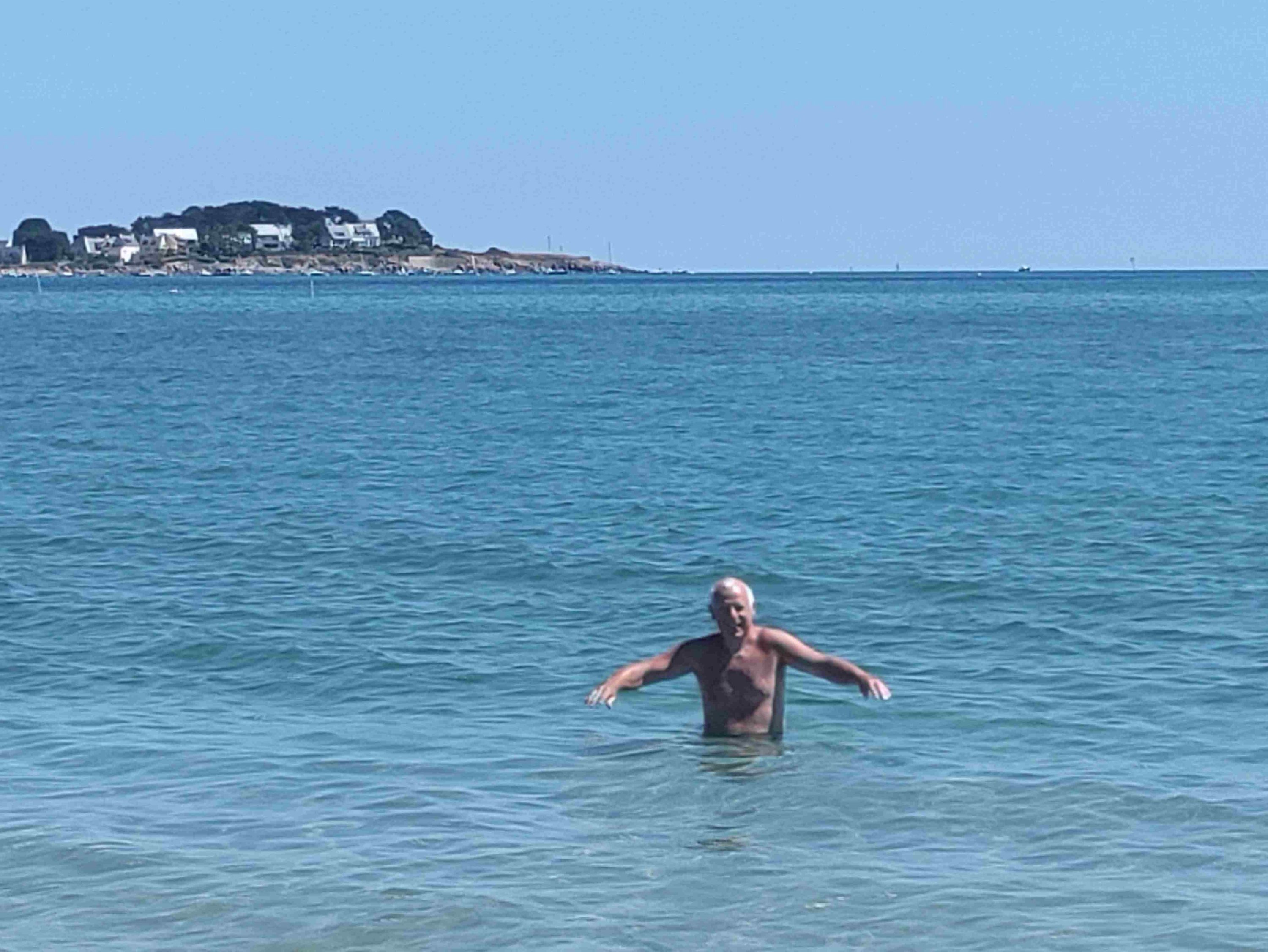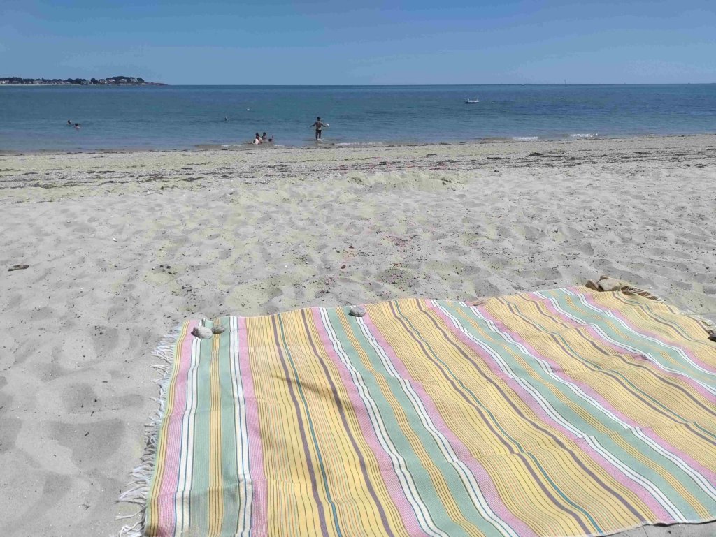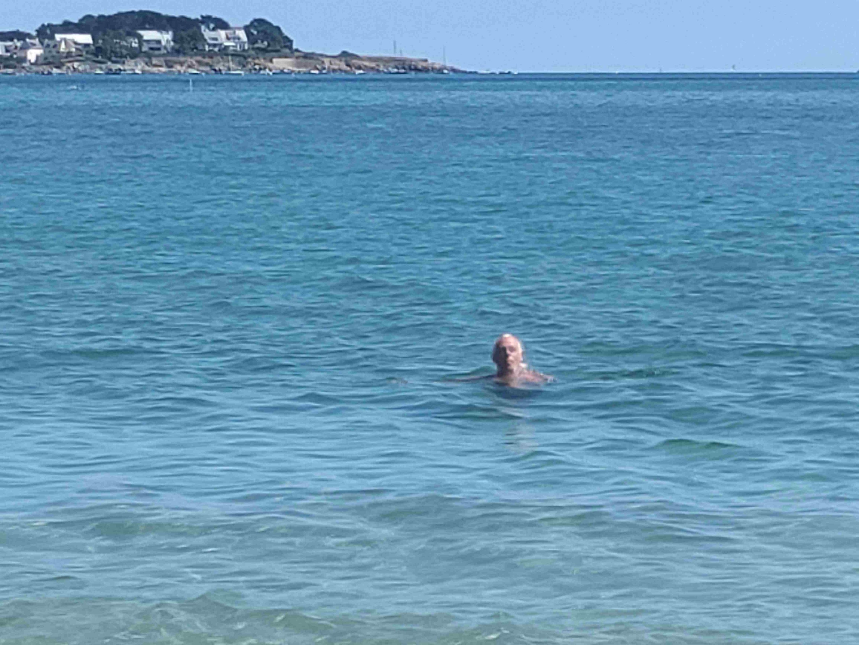 T gets into the water for a swim. It’s cold but lovely once you’re in he tells me. A couple of hours lying in the sun and the beach is a lot busier. We would have stayed longer but I admit I’m missing an umbrella and a beach chair.