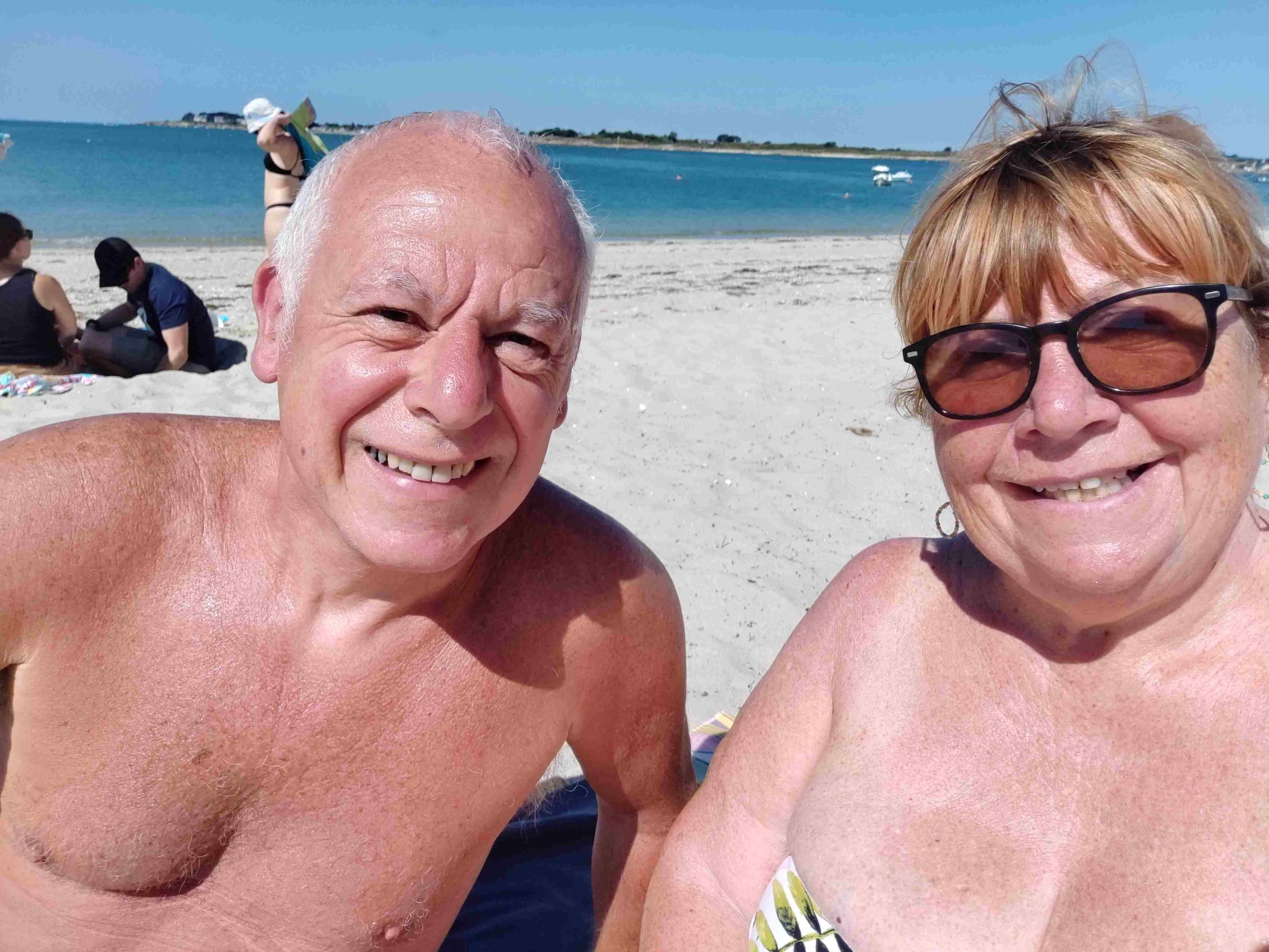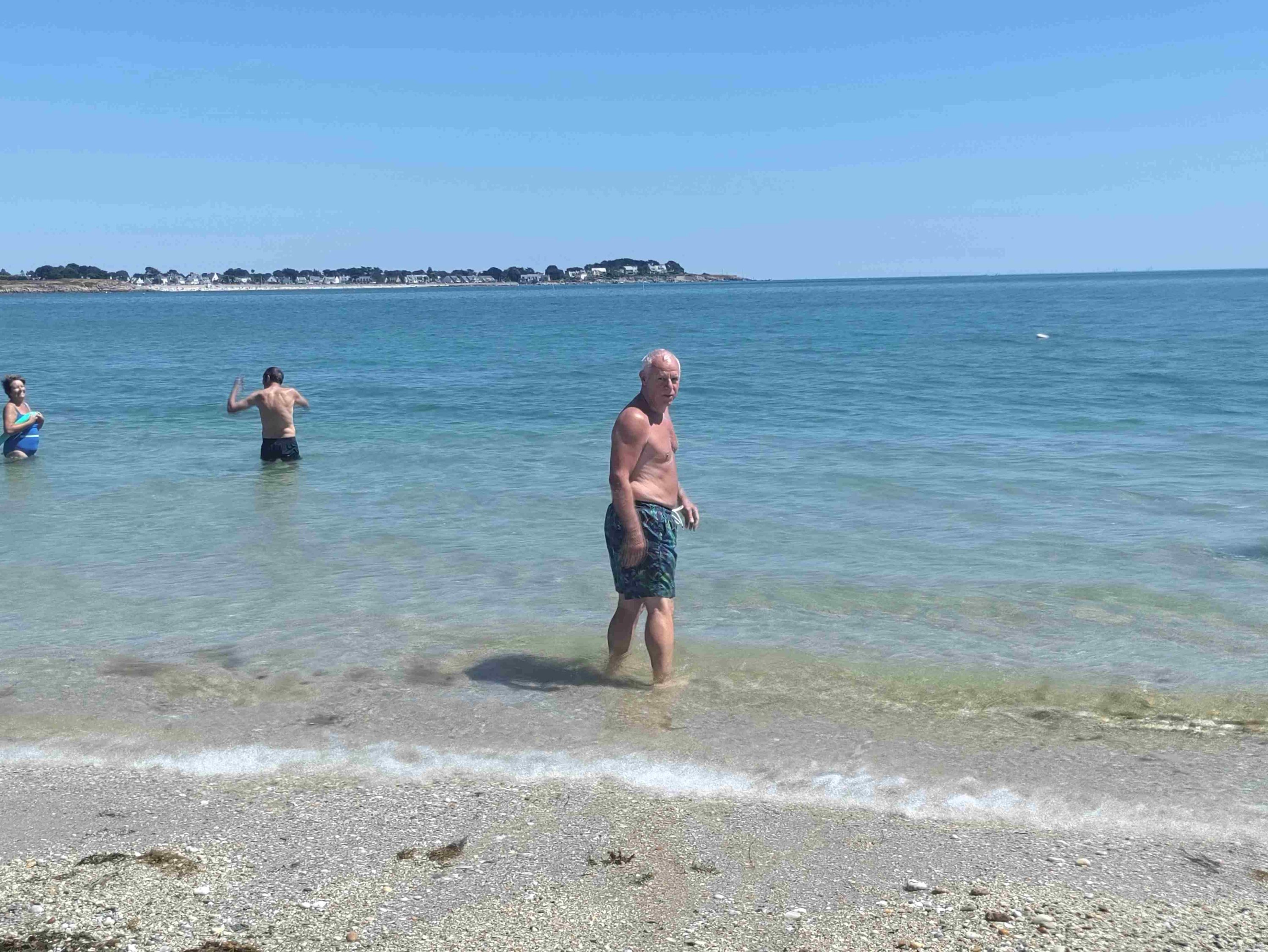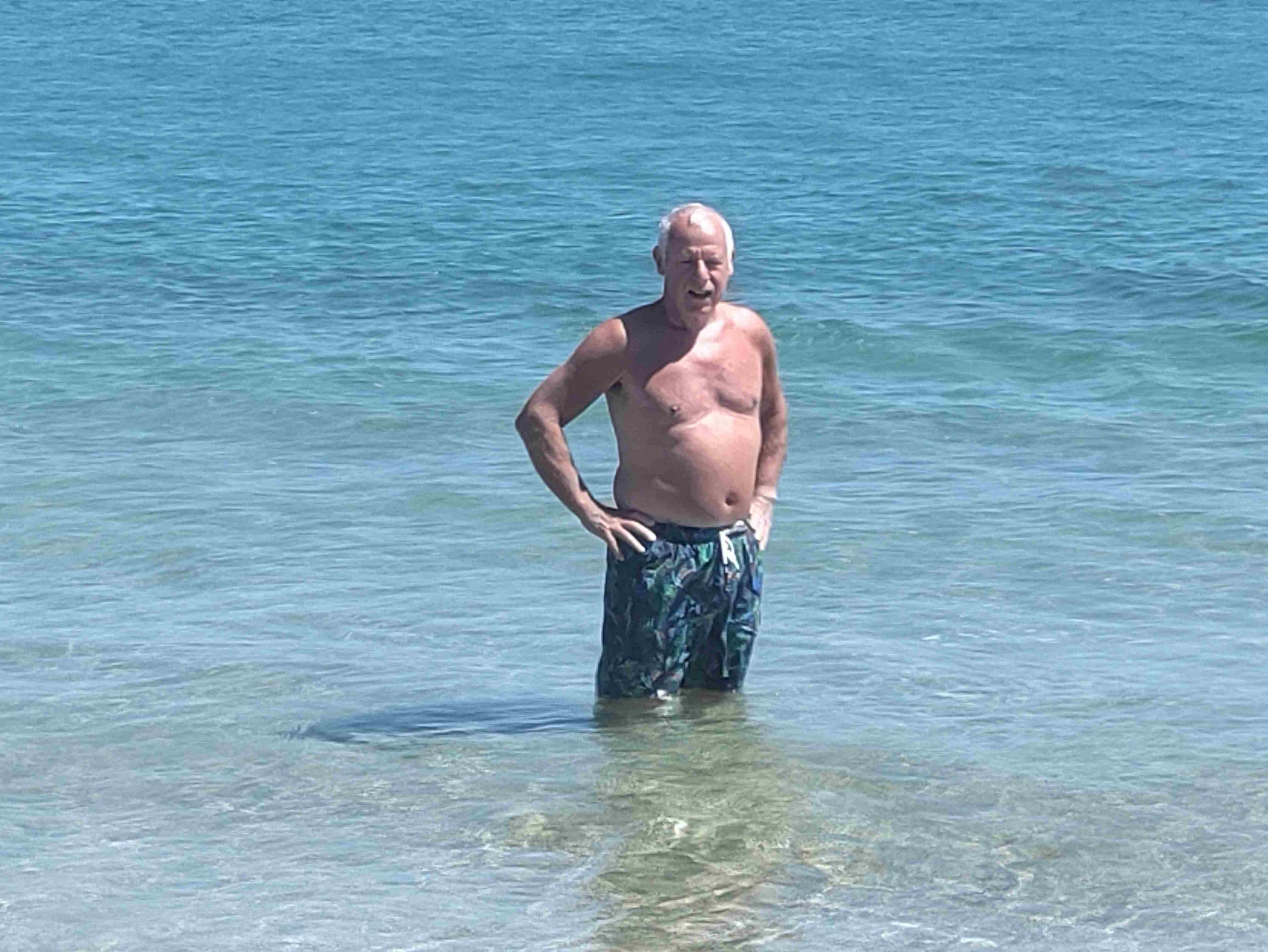 T gets into the water for a swim. It’s cold but lovely once you’re in he tells me. A couple of hours lying in the sun and the beach is a lot busier. We would have stayed longer but I admit I’m missing an umbrella and a beach chair.
