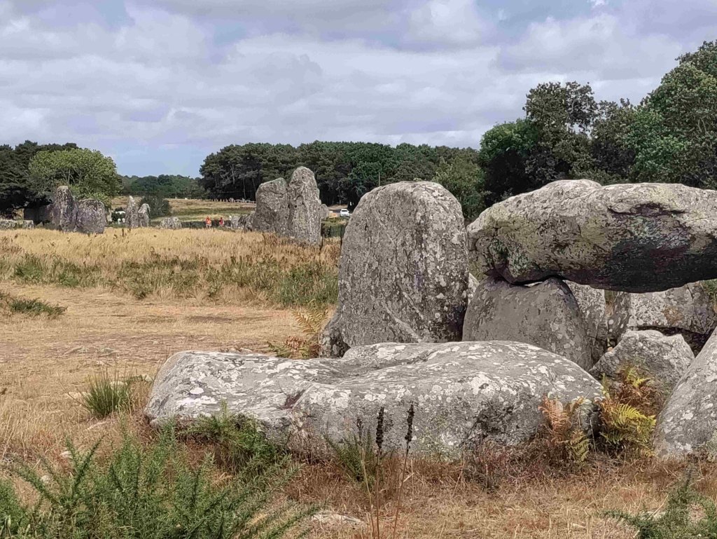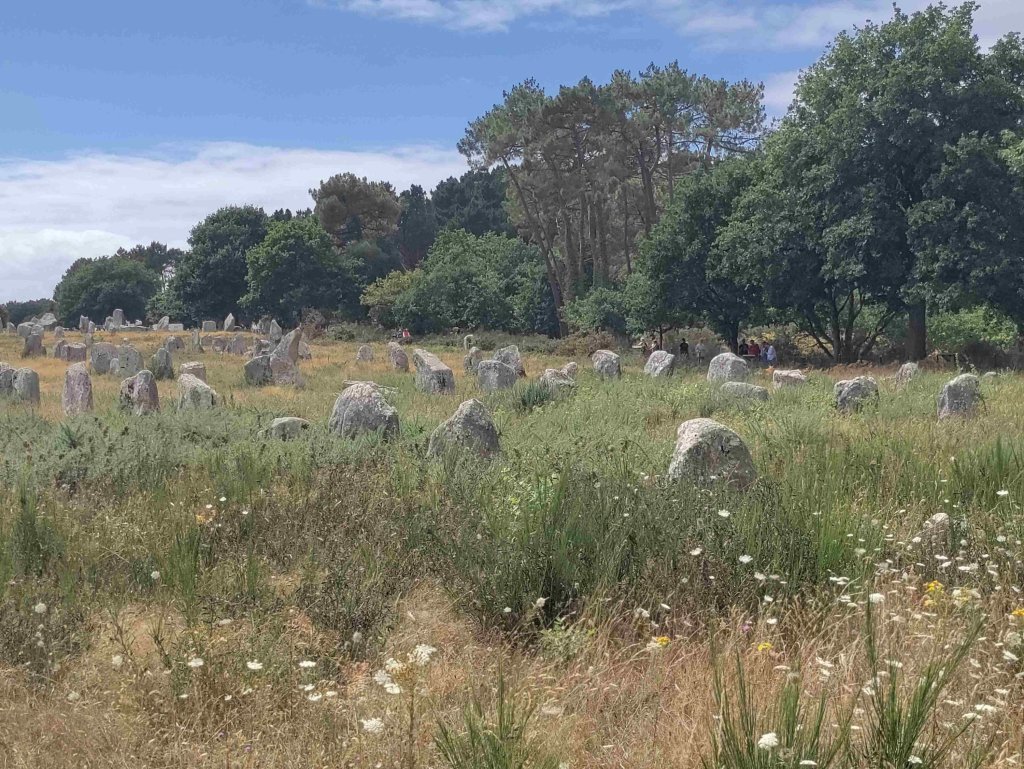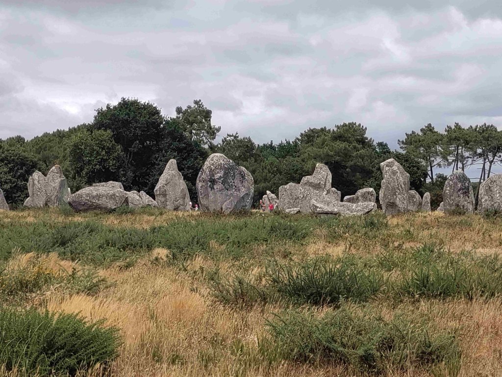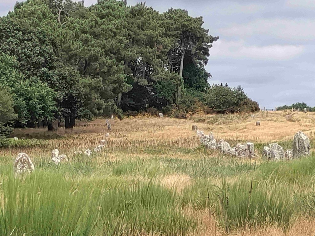 It’s after midday so we decide to go shopping instead. Try Lidl but the car park is too small so we find a Leclerc in Auray 15k down a very busy road. Do a minor shop as we’re not sure where we are pitching tonight and we may not have electricity. End up having lunch in the carpark before heading back. The situation hasn’t changed and it’s still mobbed everywhere around the visitors centre so we go a little way up the road to Kermario.