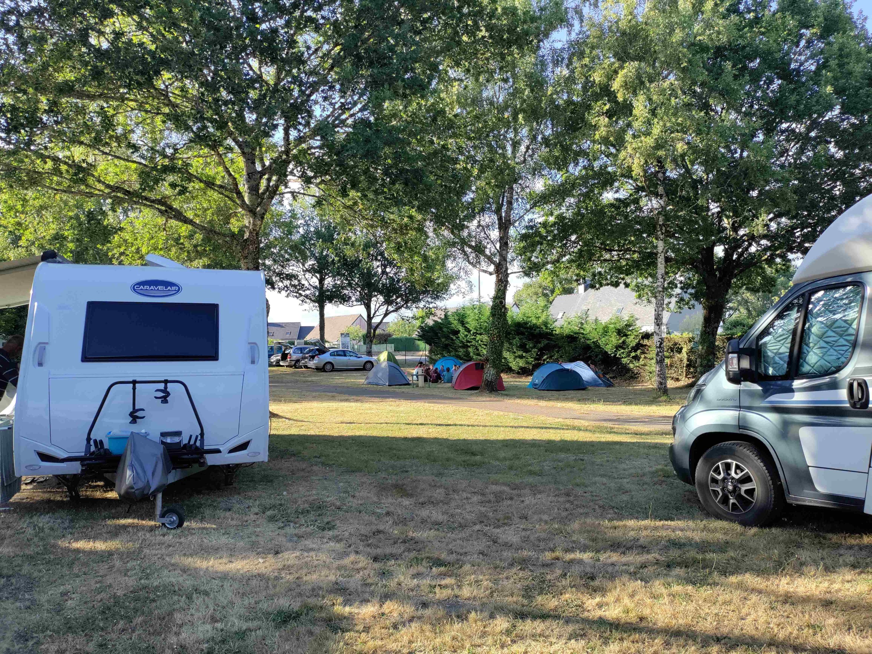 We arrive there around six pm. It’s a municipal and only costs €15 a night. We get a big grass pitch, electricity and facilities. All good.