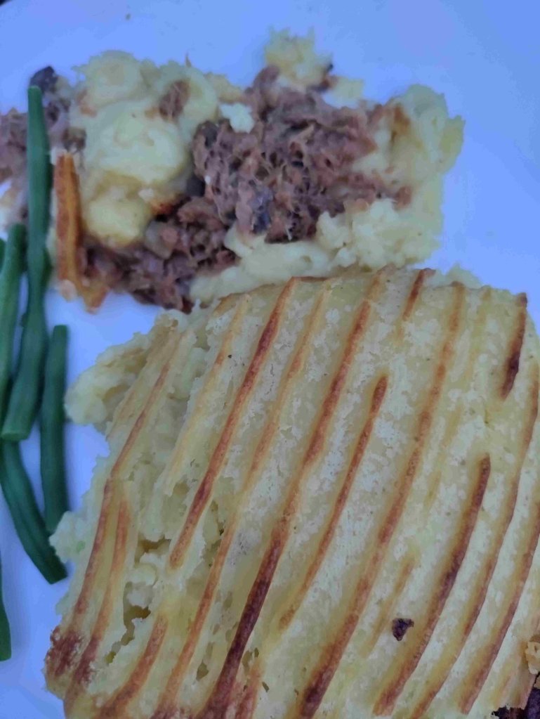 Dinner outside is a kind of cottage pie but made with duck. I bought it when I thought we were slumming it. It’s ok as long as it’s eaten with hp/fruity sauce, we did have green beans with it though.