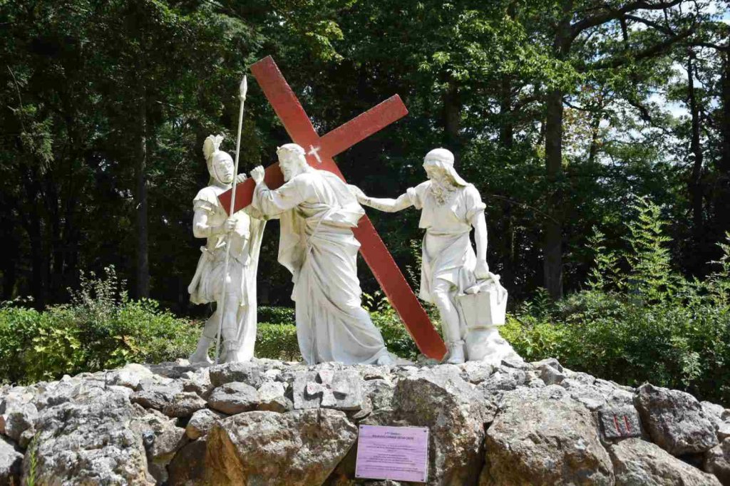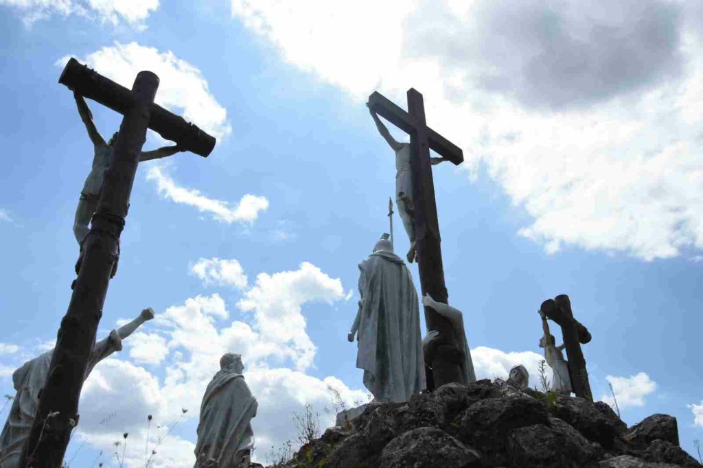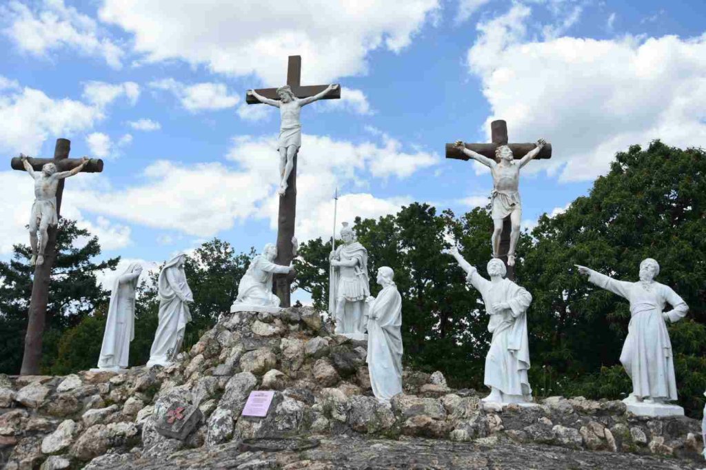 I’m content to sit and watch and read but T’s ready for a bit more action so goes on a bike ride. To Calvary no less. Le calvaire de Pontchateau, now a place of pilgrimage. The strangest place just up the road. It has fifteen stations of the cross and he was informed of its history whilst there by a friendly nun.