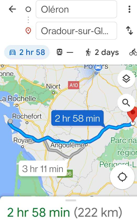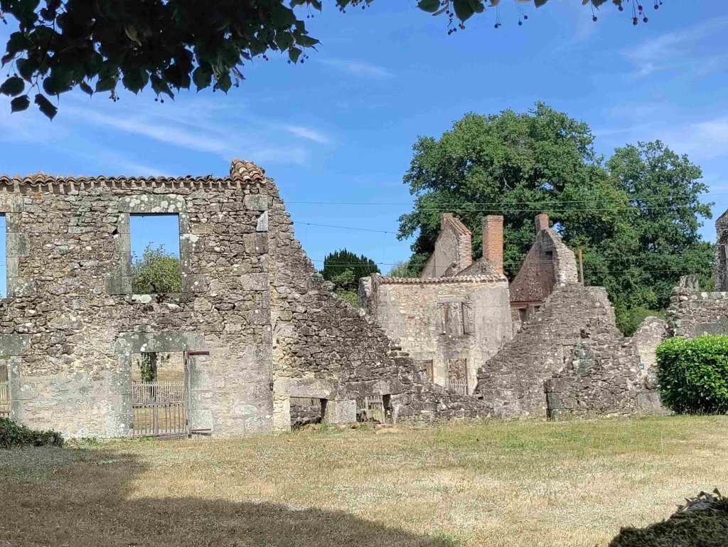 We are heading east towards Oradour-sur-Glane, through the Cognac region where there are vines everywhere. We’d never heard of the place ahead of our trip but we met some Brits who told us to visit if we were in the area.