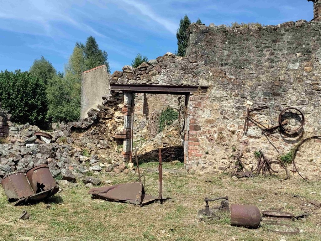 Out of the museum and into the original village. It’s basically a permanent memorial, unchanged since it was destroyed by the Nazis in 1944. 643 of its inhabitants were massacred by a Waffen-SS unit. Only six people survived. The houses and businesses are shells as the whole village was burnt down after the atrocities.