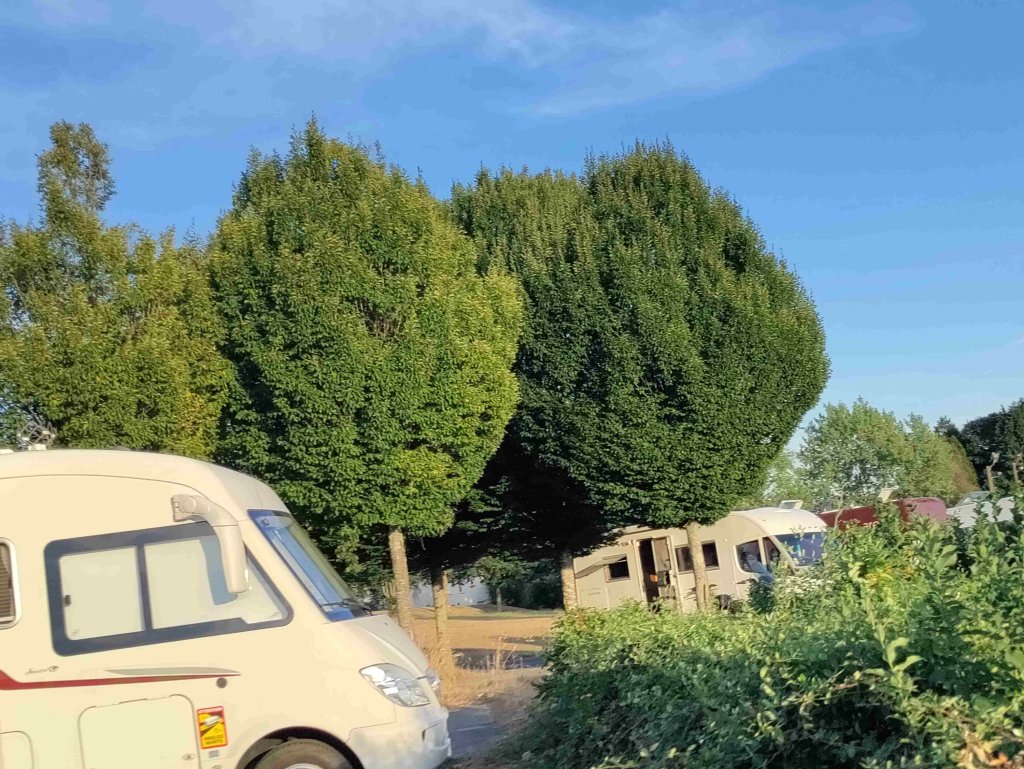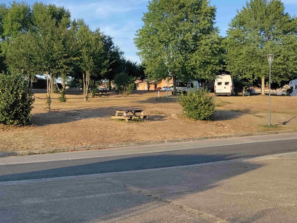 We are staying in the local Aire for free. It’s huge, overlooking the Sports center but exposed. It’s going to be another hot one.