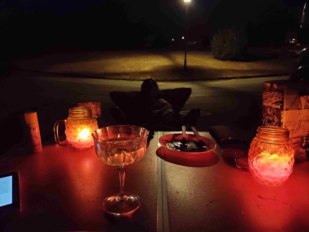 Back at the van it’s a little cooler so we sit outside where T does a bit of stargazing before bed.