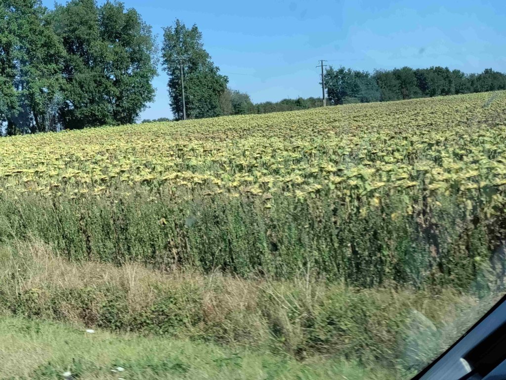 We pass many fields of sunflowers on the way. We’ve seen them a lot on this trip