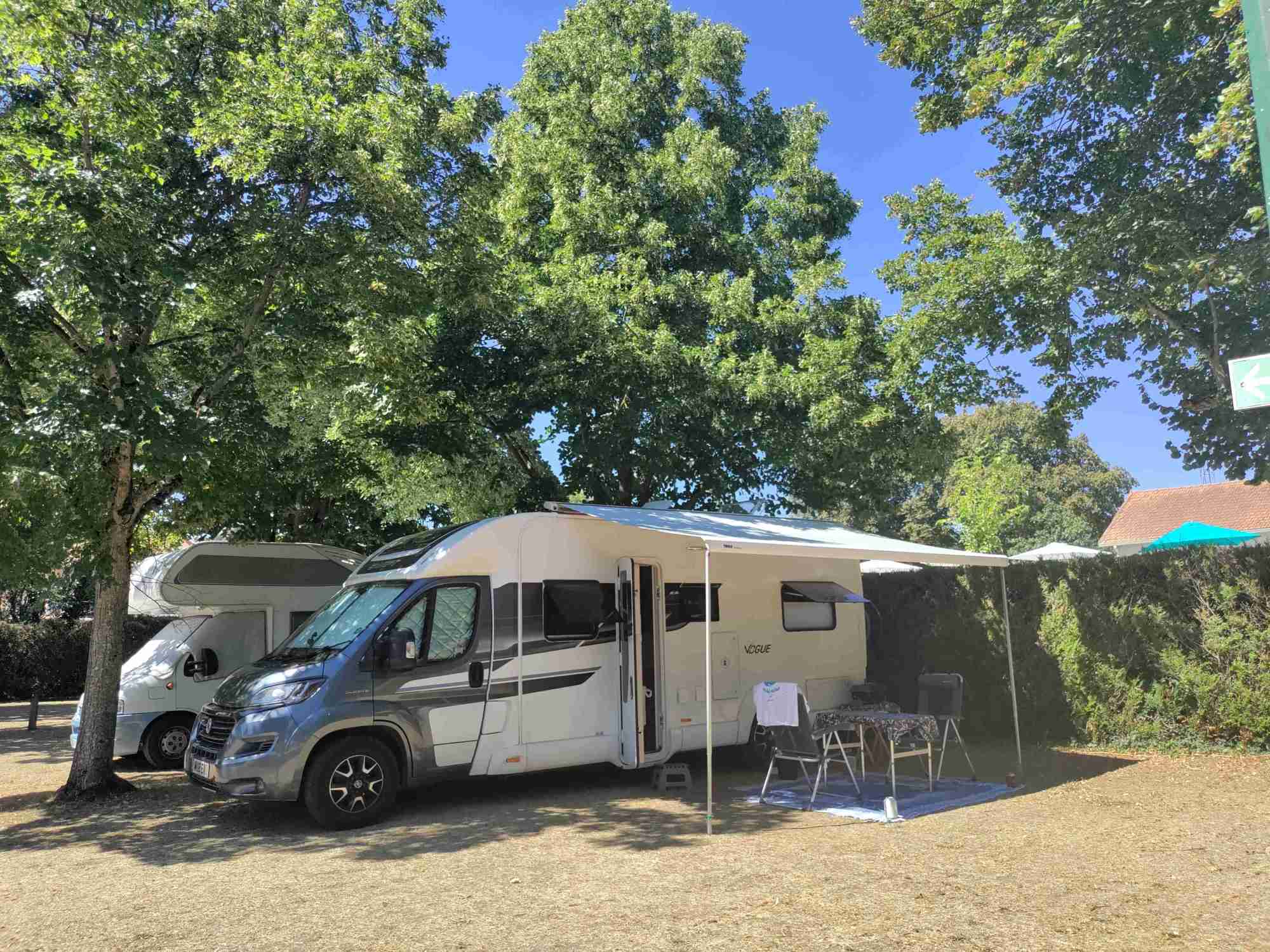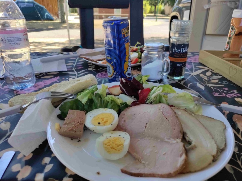 Someone arrives at 4:30pm and wanders around with a clipboard. I queue to pay and I’m a bit worried as the spanish couple before me who parked up just like us are told …. c’est ne pas possible…. Luckily we appear to have picked the right spot and I pay without issue. Another french family who arrived before us and set up with awning out and everything, are packing up again and leaving around 6:30pm! It’s ridiculous really as both those pitches they were in are left empty all night.