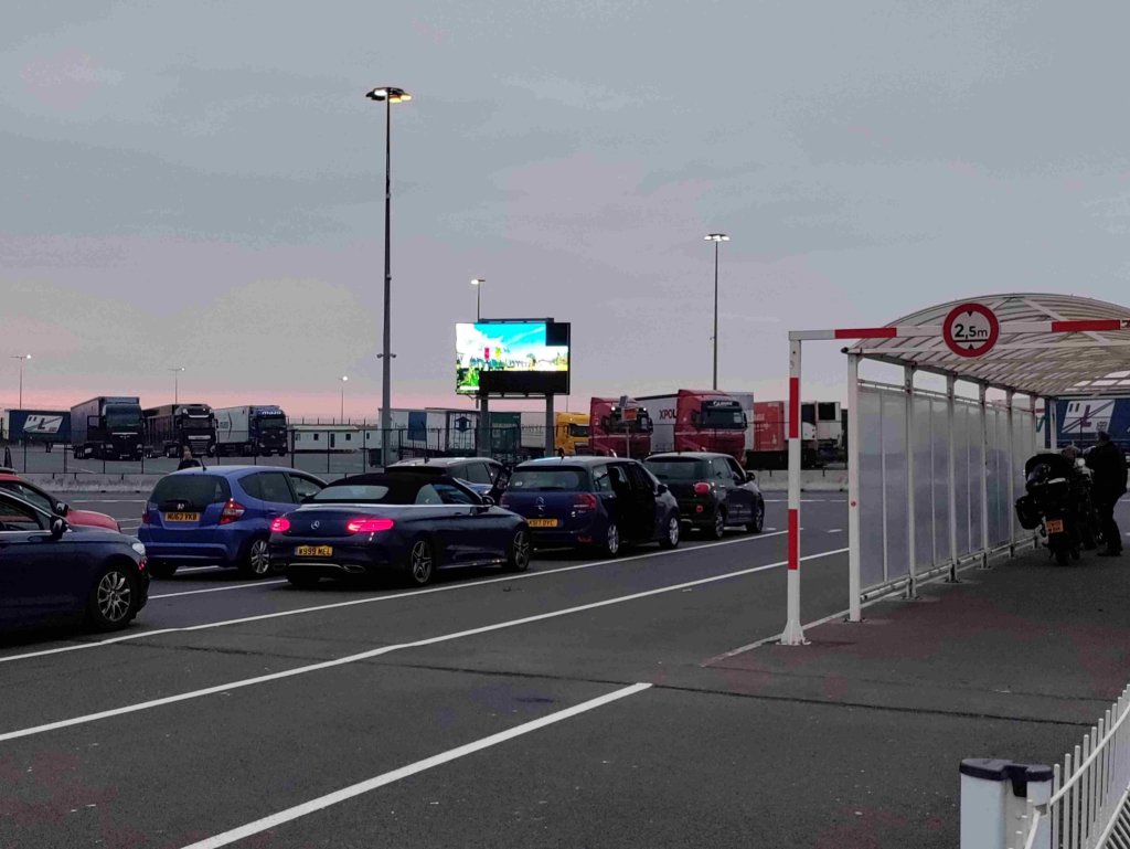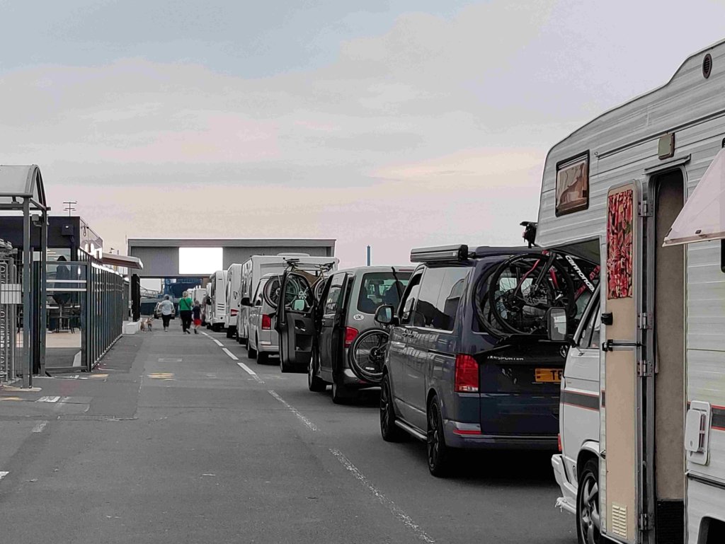 Next stop is the ferry port at Ouistreham a few k outside Caen. Even though it’s now around 8pm lots of people have arrived early.