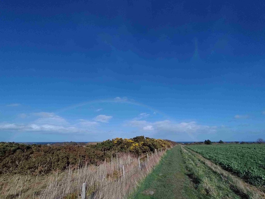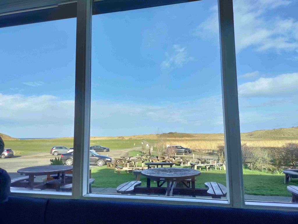 It’s still as lovely but different. When we visited the beach in October 2018 it was a calm cold and sunny day with the tide out. The water was turquoise and the sand golden. This time it’s windy and a little wild and the tide is in. Still beautiful but different. After a wander along the beach we walk to Dunstanburgh golf club clubhouse just in time to miss the rain.