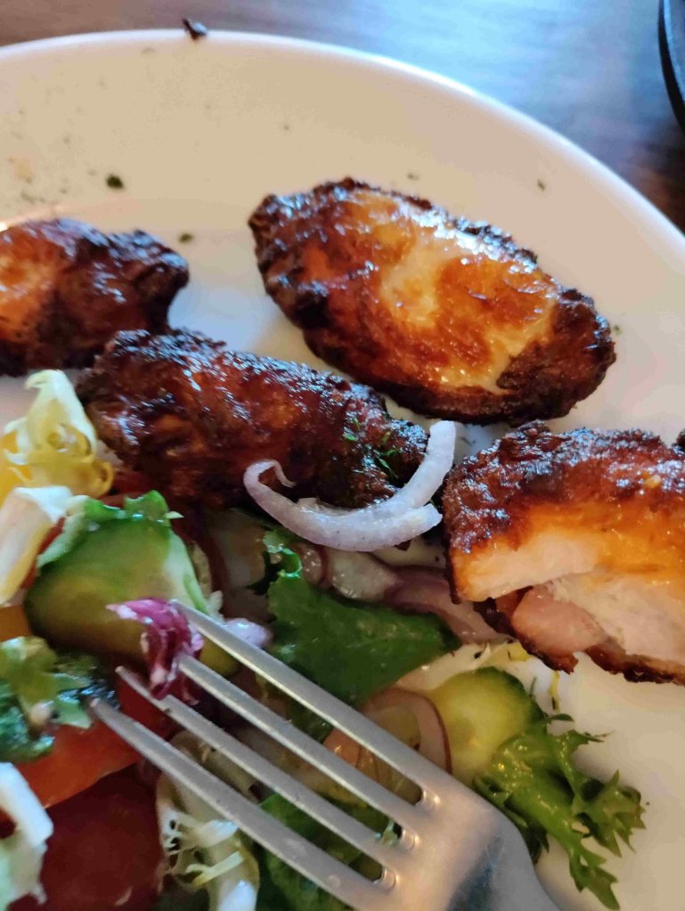 Up the road into Embleton and a visit to The Grey’s pub which was uber dog friendly. Almost everyone had a dog. One group had five large dogs between them all squished under one table. Chicken wings keep the munchies away until we wander back to the van for food and telly.