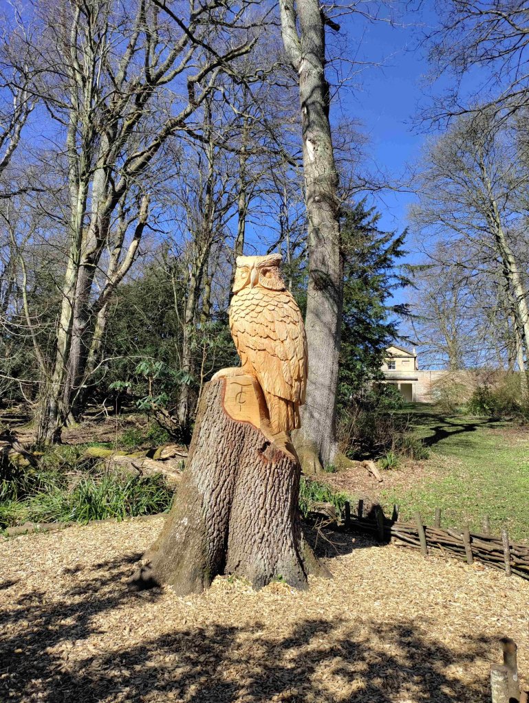 After our tour of the house we wander through the extensive grounds and lakes and visit the walled gardens and the portico walk. There are beautiful wooden sculptures made from fallen trees around the gardens.