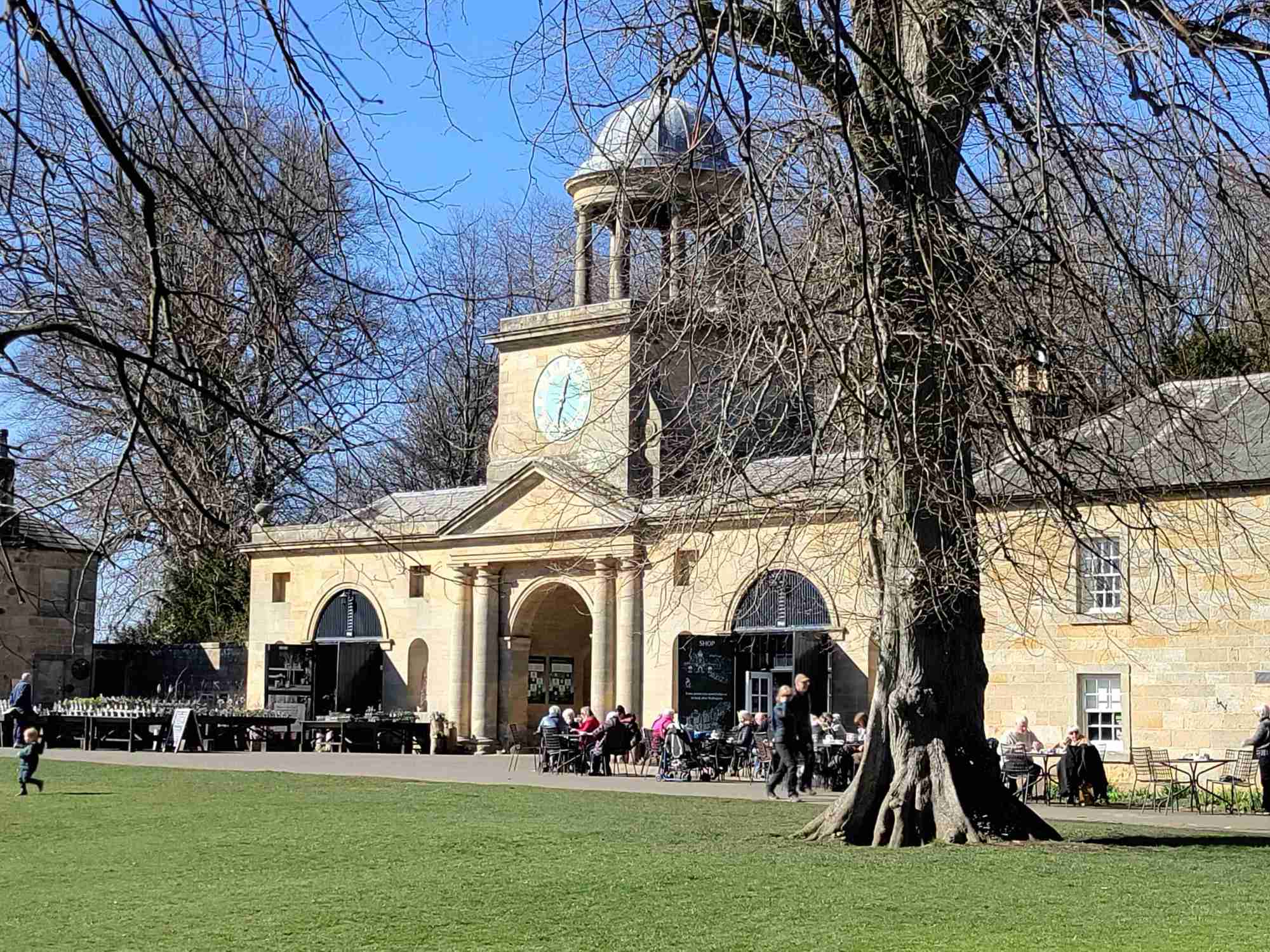 The clock tower dominates the courtyard currently in use as a garden shop, NT shop and cafe.