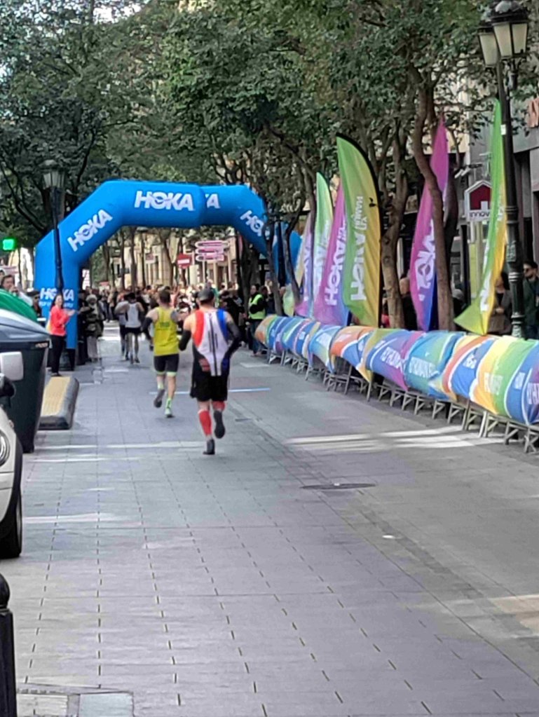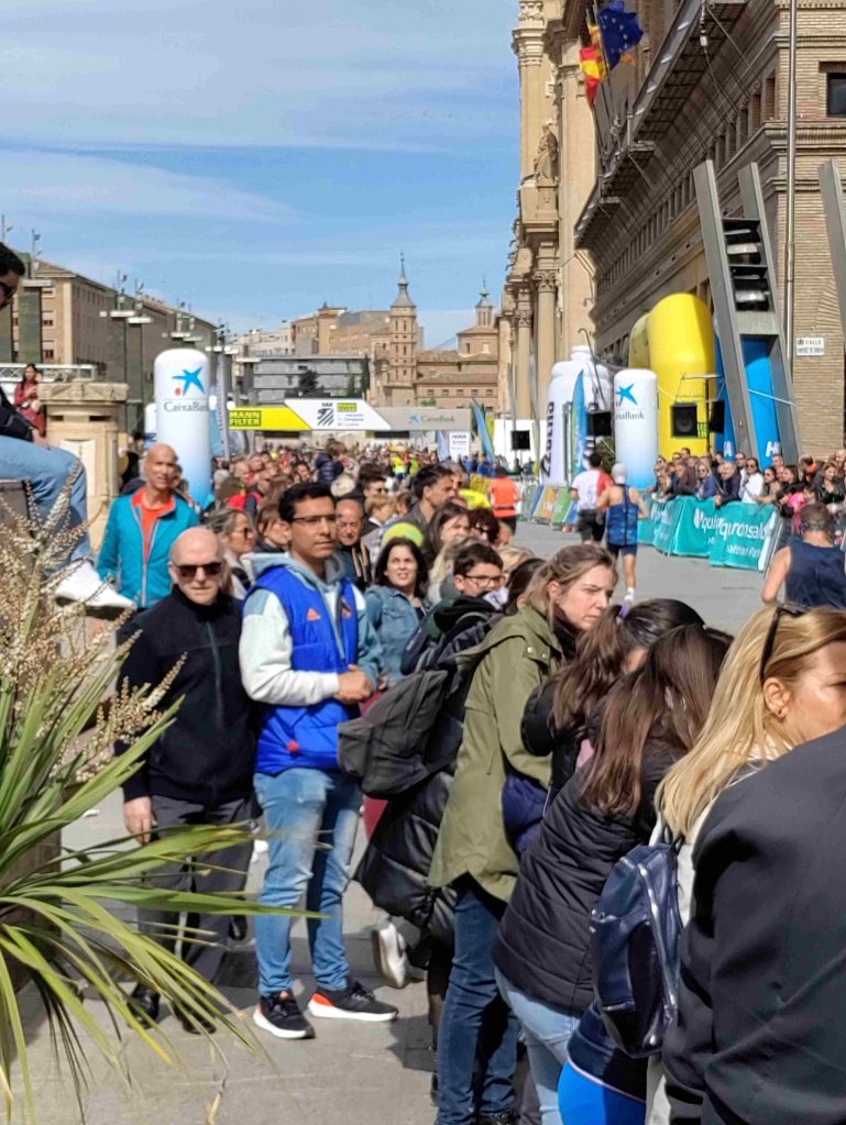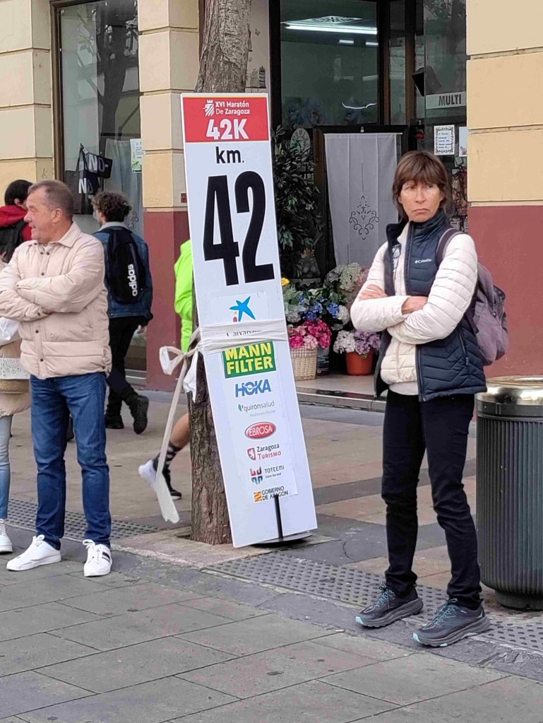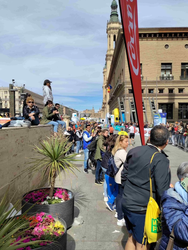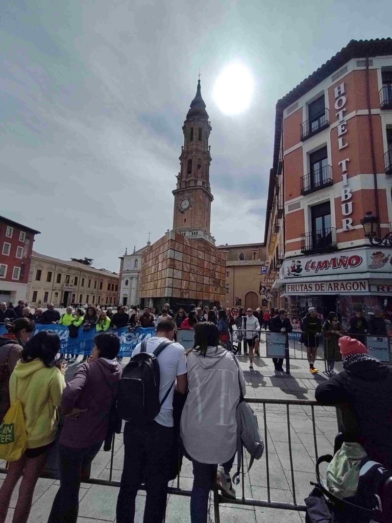 We hit the main square Plaza Espana with trams running through it and a fountain in the middle and realise that a race is in progress across one corner. It’s the Zaragoza marathon. We discover it started at 8:30am so it’s just under the three hour mark. There lots of people watching and enthusiastically cheering the runners on.