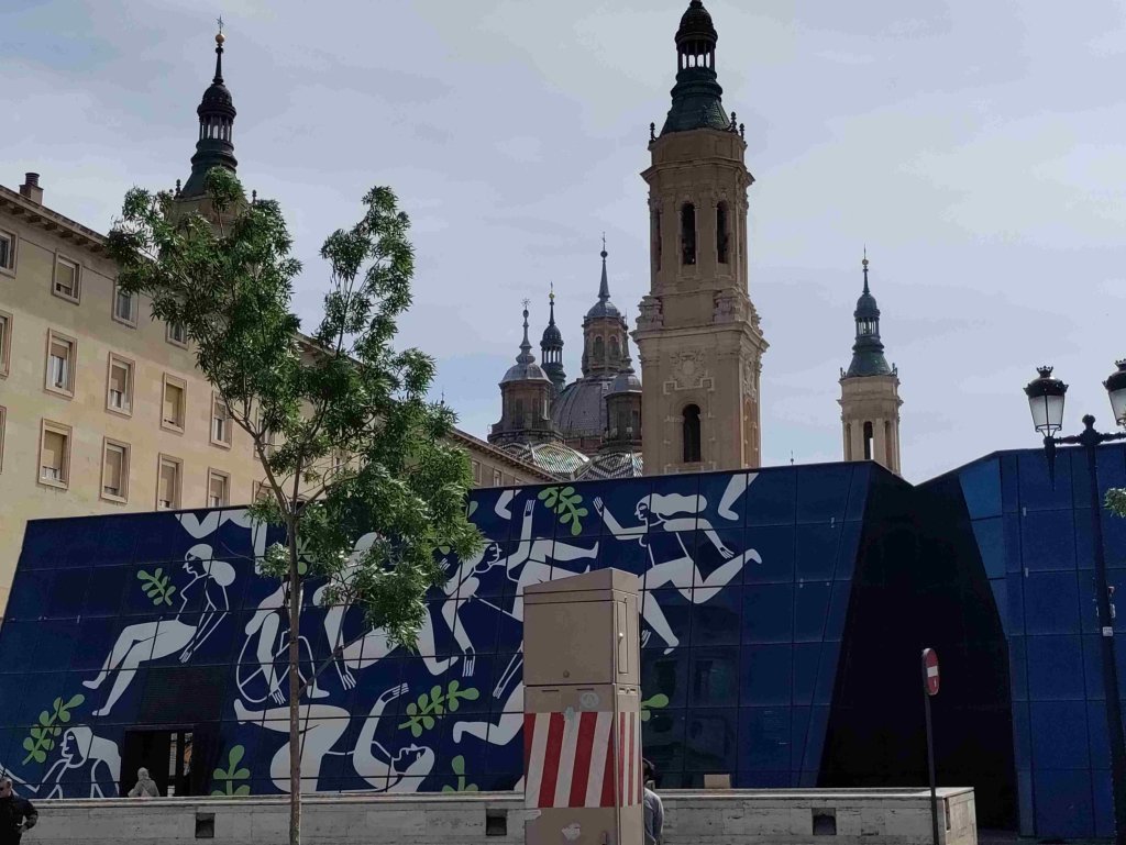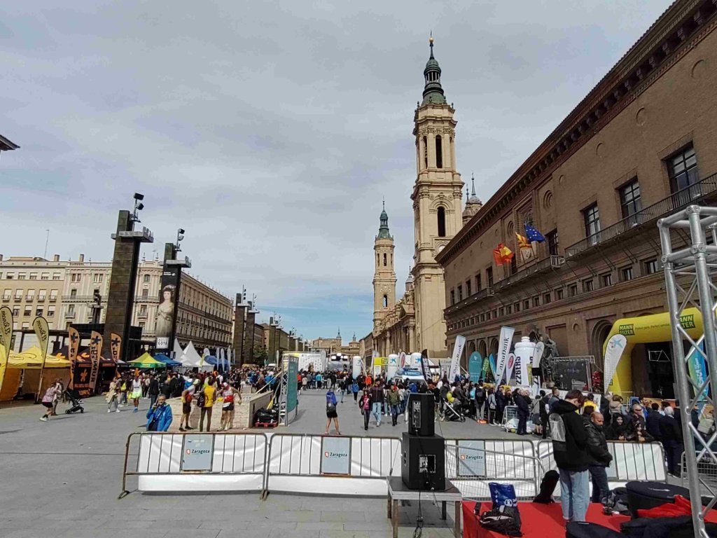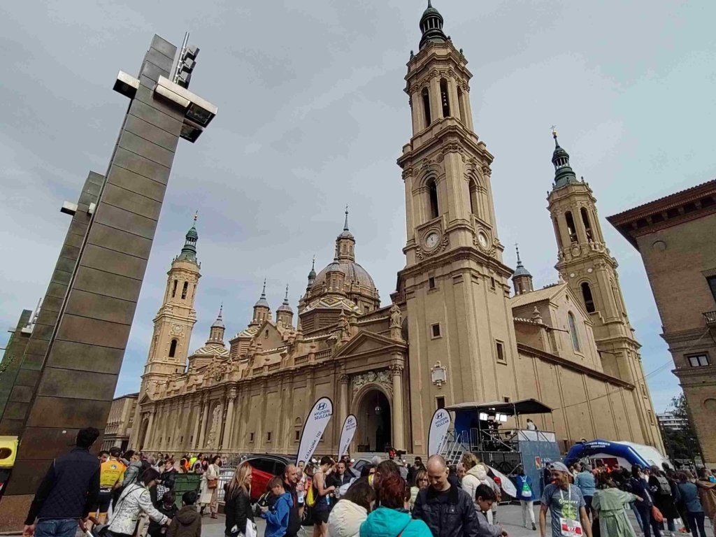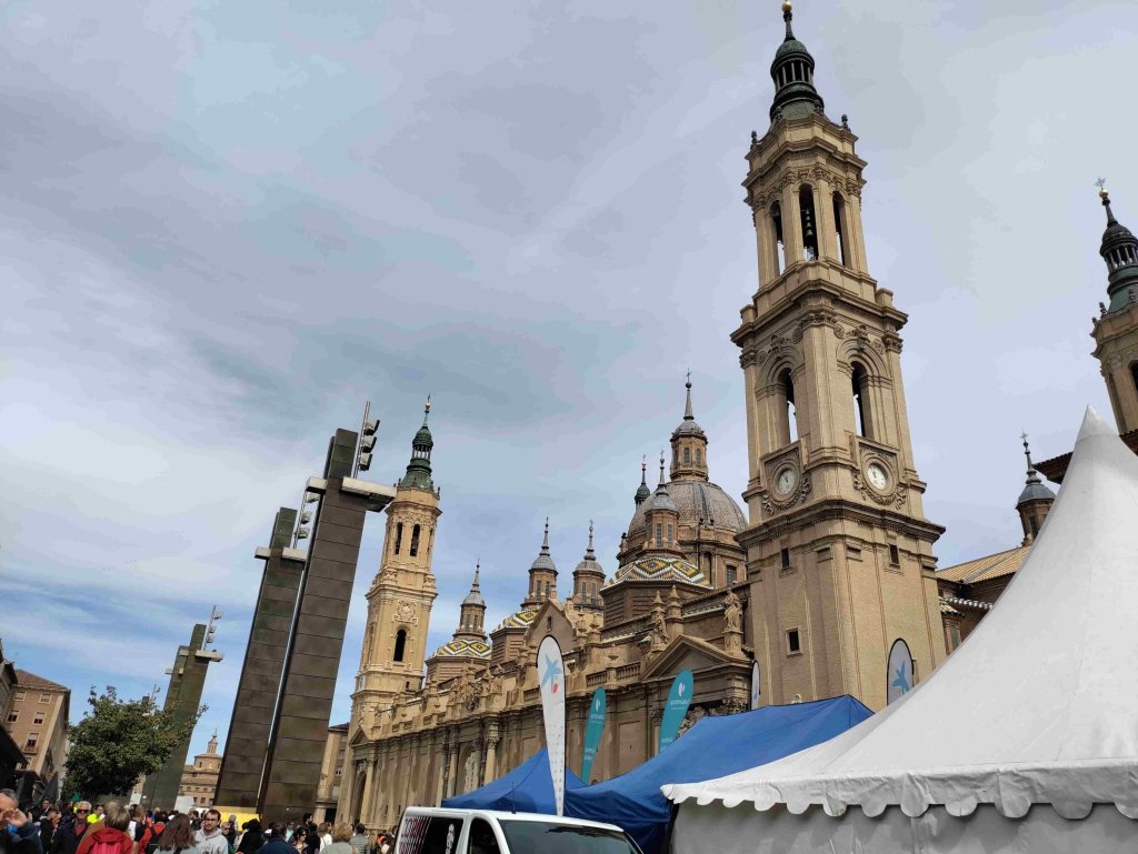 We walk the last bit of the marathon route to the finish line as it’s in La Plaza de Nuestra Señora del Pilar, the square to visit in Zaragoza. Up to this point we hadn’t been blown away by the place but the buildings in the plaza are amazing.