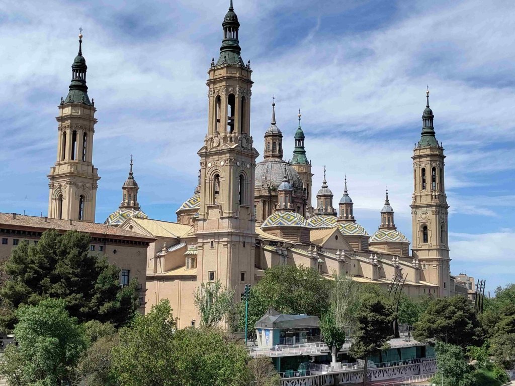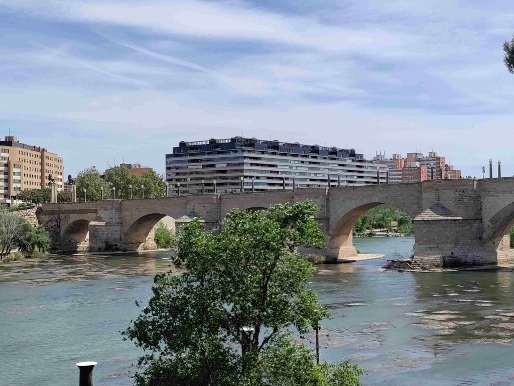 We walk to the river Ebra and halfway across the Puente de Piedra bridge for great views and photos of the basilica.