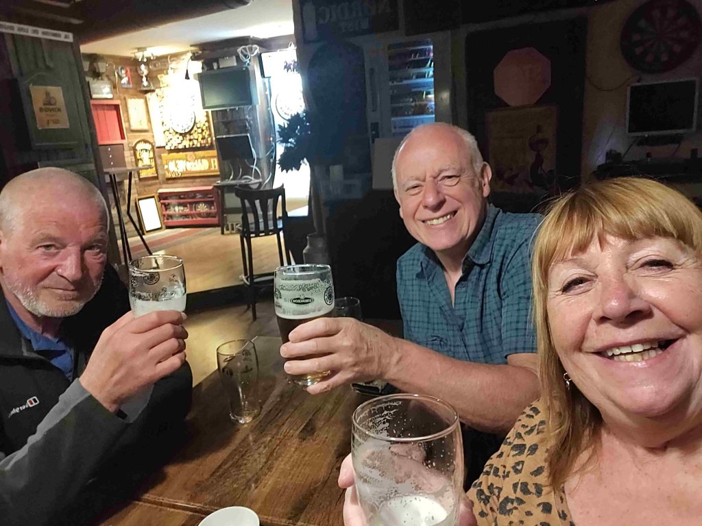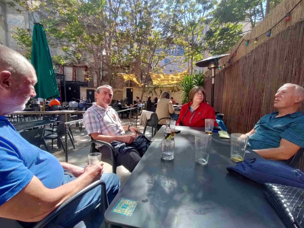 The sun is shining and today is the first day of the trip it’s warm enough to wear just a short sleeved t-shirt. We find seats at a bar in the sunshine and have a cuppa except for T who enjoys a small beer.
