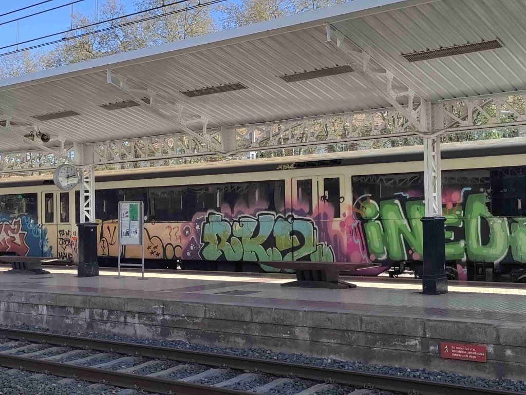 Our second stop is in Vittorio where we have only 20 minutes to catch what turns out to be a very slow train to San Sebastian. This time we see plenty of graffiti and the houses look more tirolean than spanish.