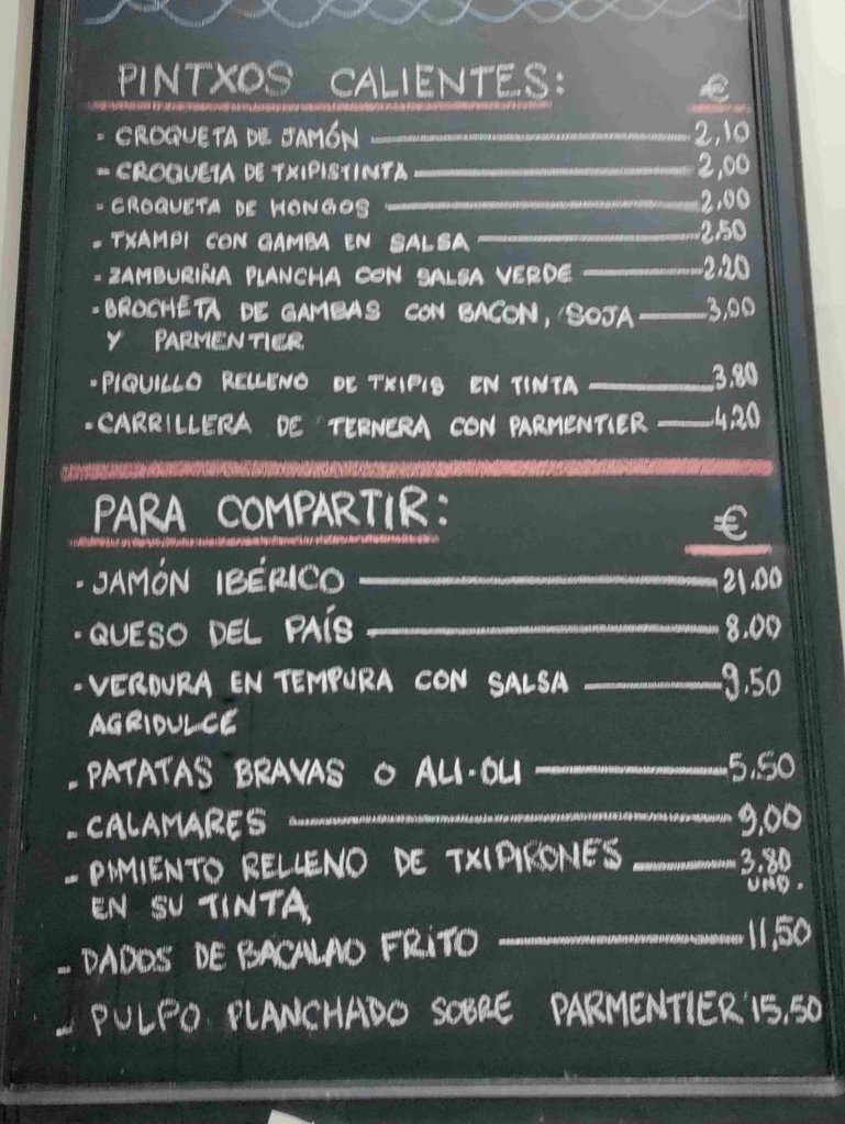 A quick visit to the local shop for milk and beer and then out for pintxos for dinner.
