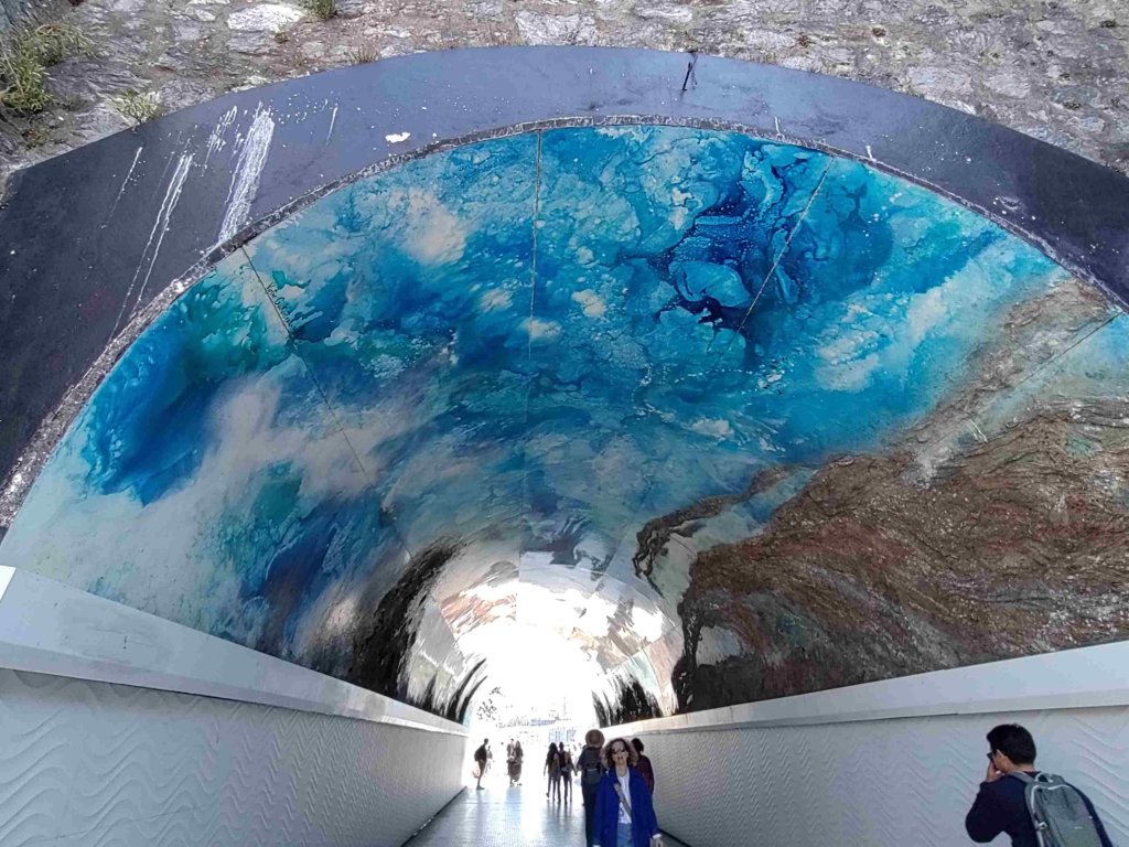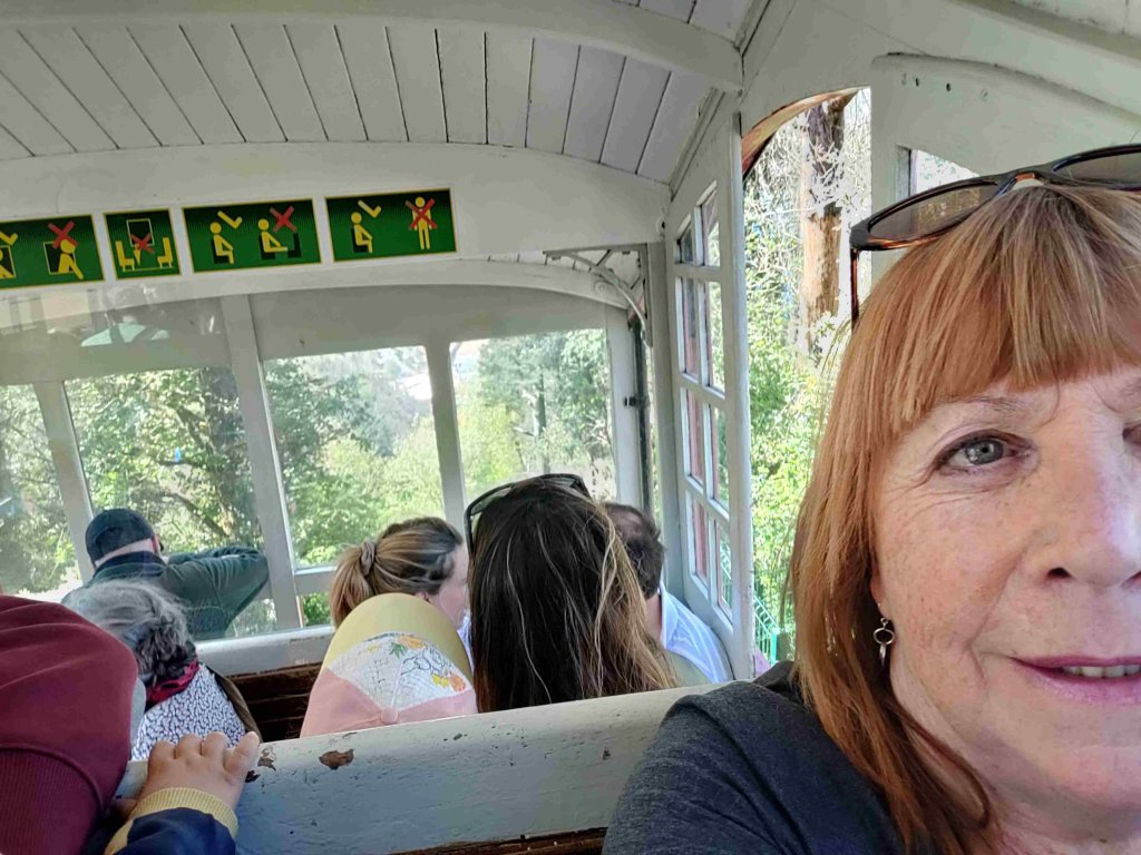The funicular takes us up to an amazing viewing platform where we enjoy an ice cream before a drink in the sunshine overlooking the bay. Our old Alma Mater is with us too in the form of an NSP sun umbrella.