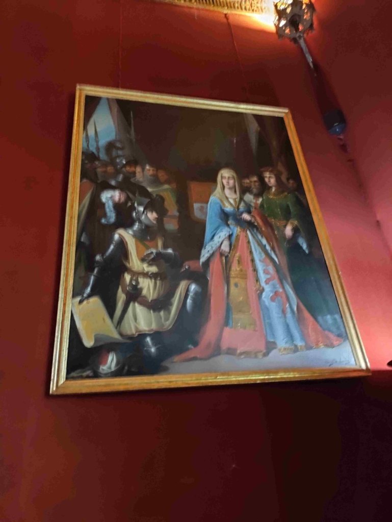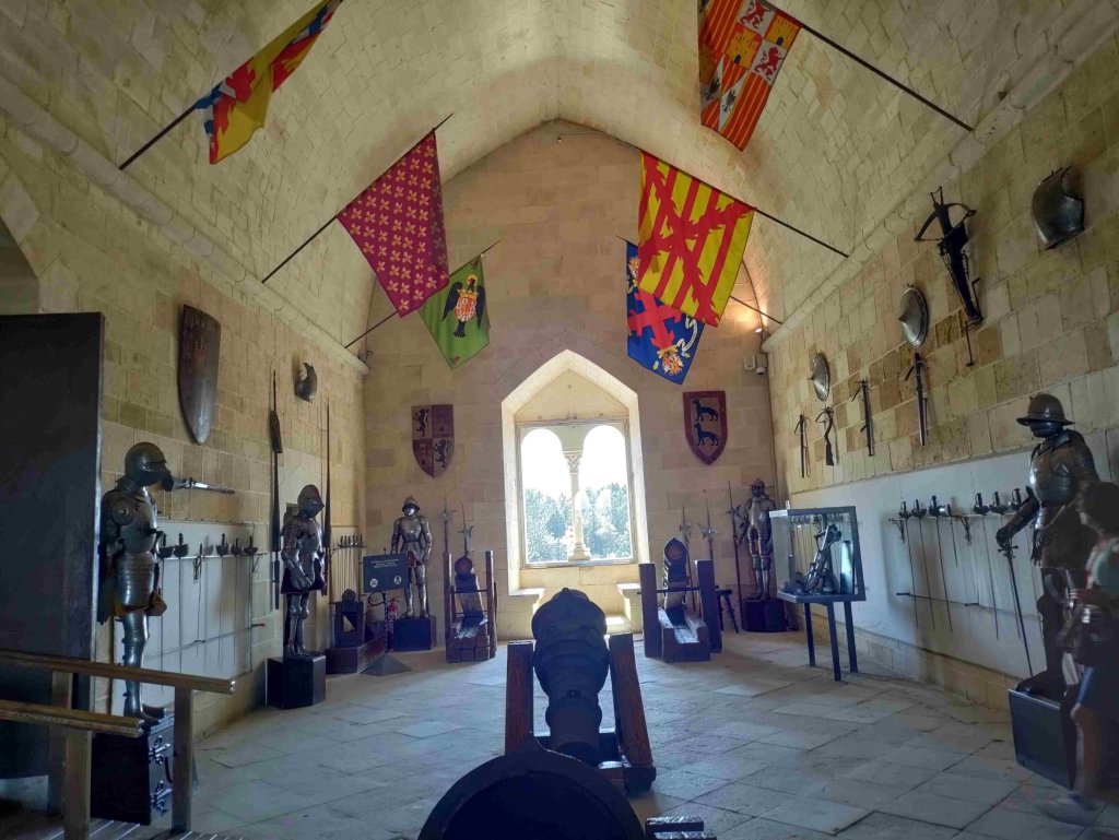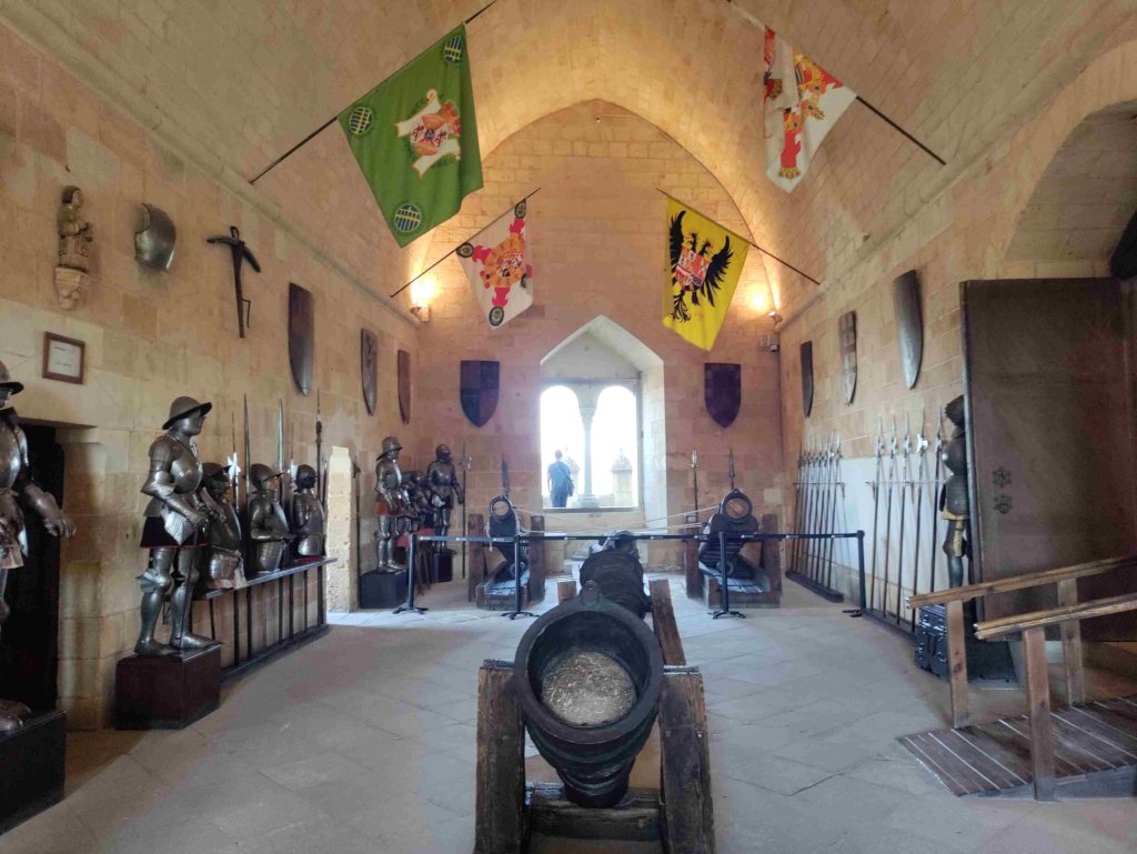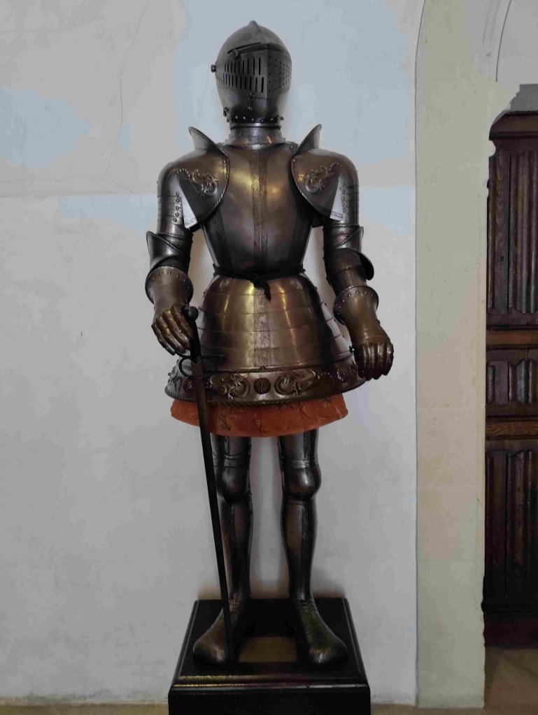 There’s a very deep moat, a large internal courtyard, suits of armour, weapons, paintings, stained glass windows and lovely wooden ceilings.