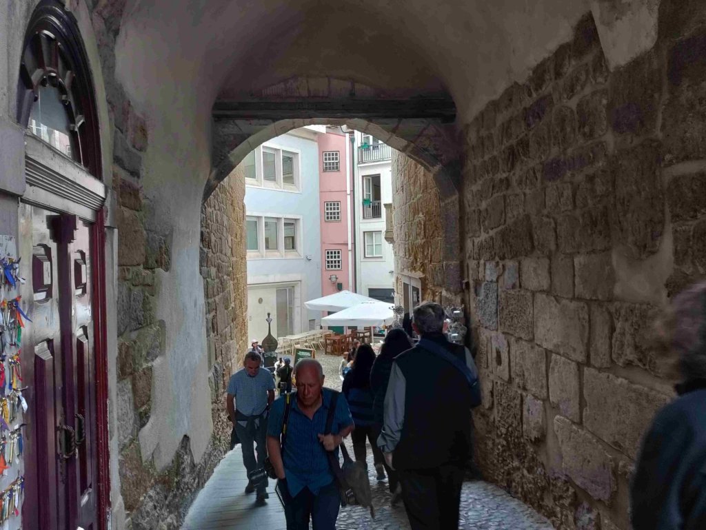 Up on through the city along pedestrian streets enjoying music provided by buskers, until we reach the Almedina Arch which was was built during the 12th century by King Afonso Henriques to mark the entrance to Coimbra’s old Moorish castle.