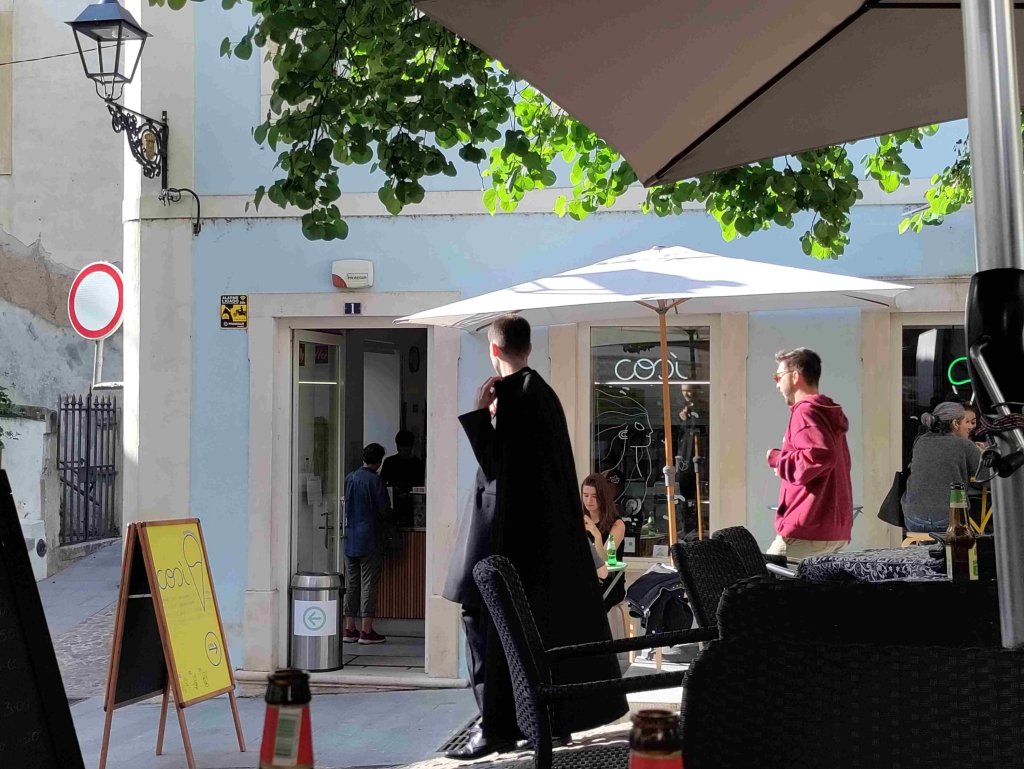 The steps start here to take us up through streets lined with restaurants and bars and shops and theatres where you can listen to Fado. Coimbra is the second home of the music after Lisbon.