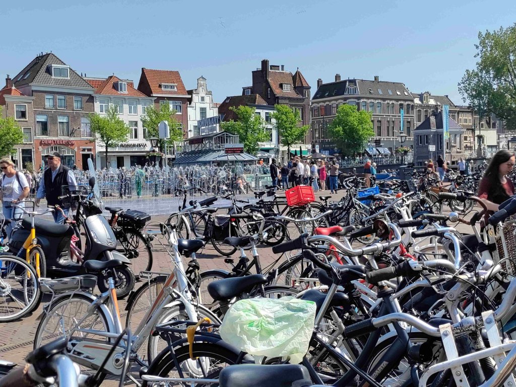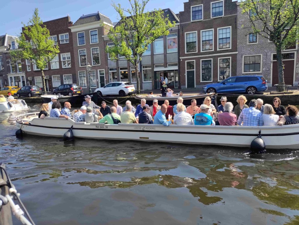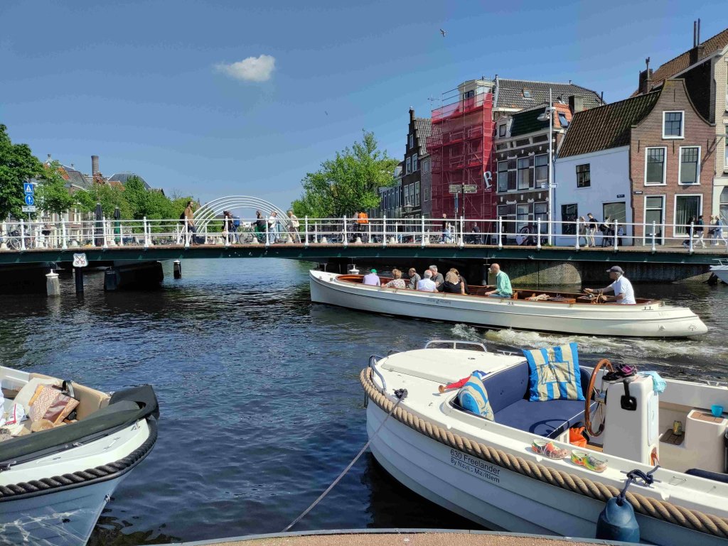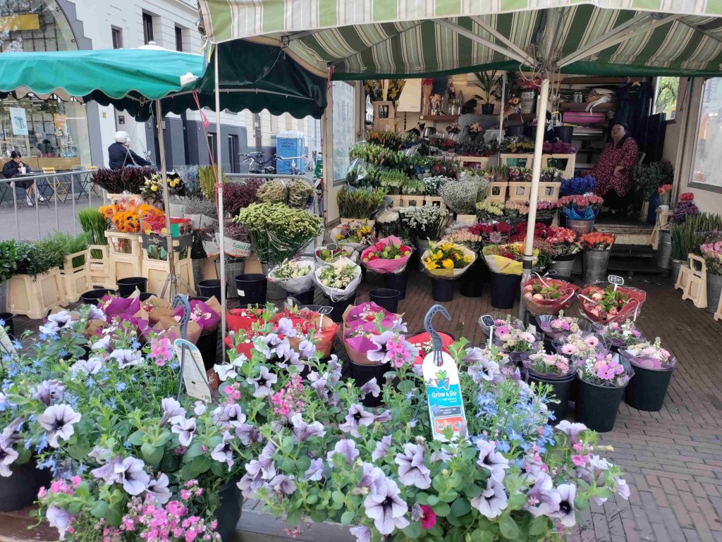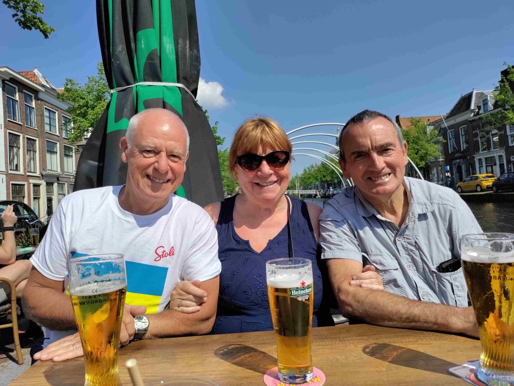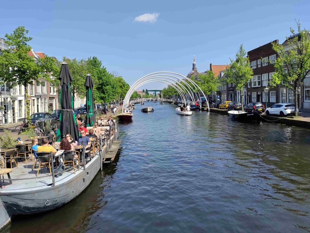 We stroll around the gardens and displays inside and out and 2.5 hours later are ready to depart. No wait for the bus back into Leiden where we wander into the main square and sit in the sunshine next to the canal and watch the world go by on the canal, eating chips and drinking beer. We are entertained by the boat goers having to duck under a nearby bridge to avoid being knocked out.
