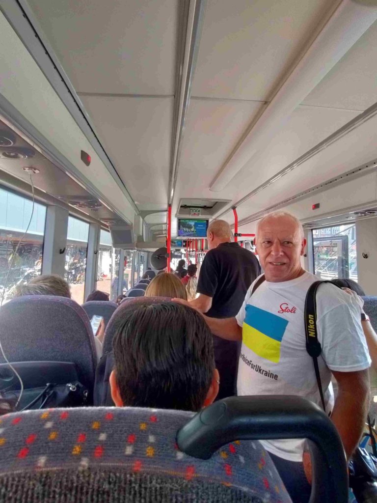 Outside the station we catch a bus for the 25 minute journey. There’s a long queue but as we’ve already bought tickets we don’t have to wait too long. It’s incredibly busy at the entrance.