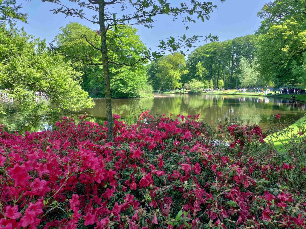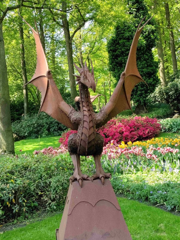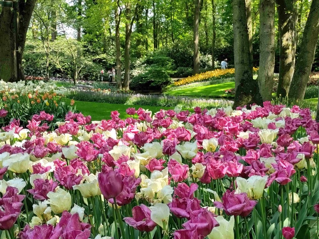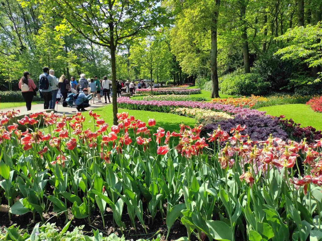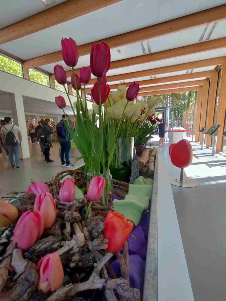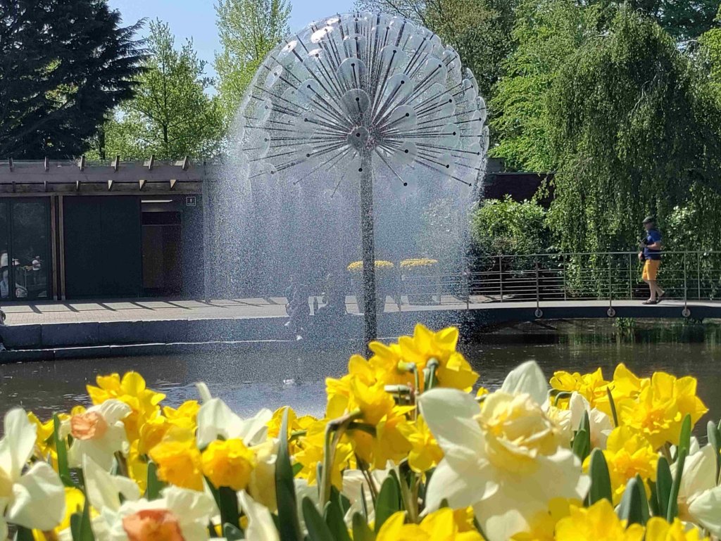 We are visiting Keukenhof Gardens today in Lisse where according to Wikipedia more than seven million tulips, daffodils, crocuses, hyacinths, and lilies are on display. The gardens only open for eight weeks each year and are usually surrounded by fields full of lines of colourful tulips but all we see are green leaves as we are visiting in the last weekend of the season. Fingers crossed that there’ll be plenty to see inside.