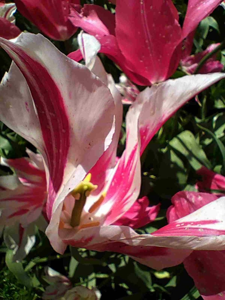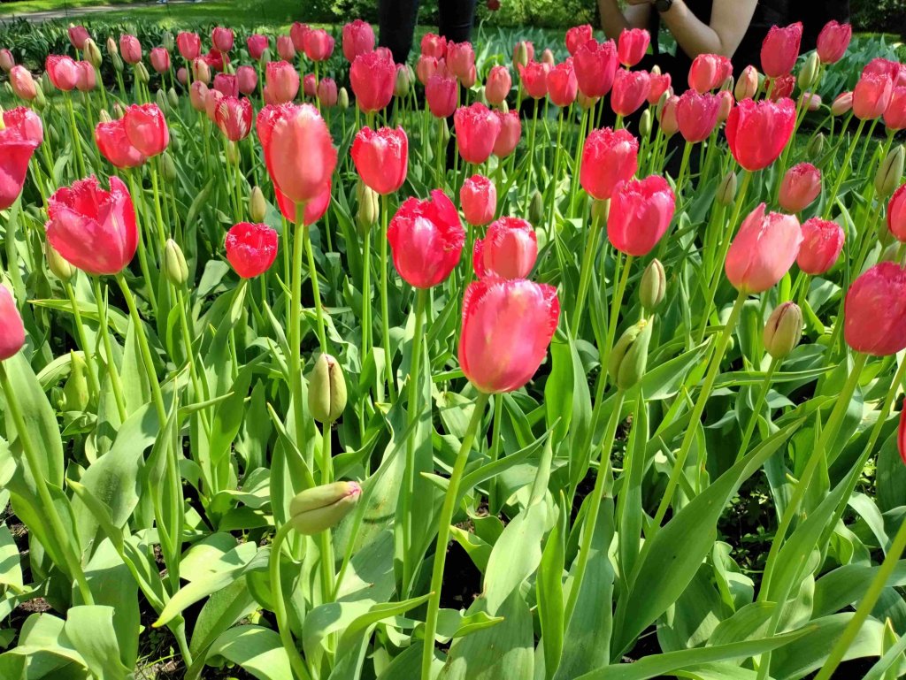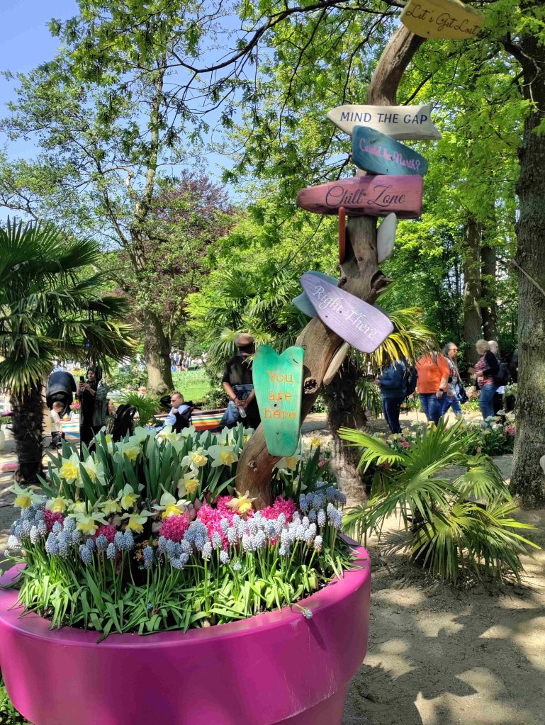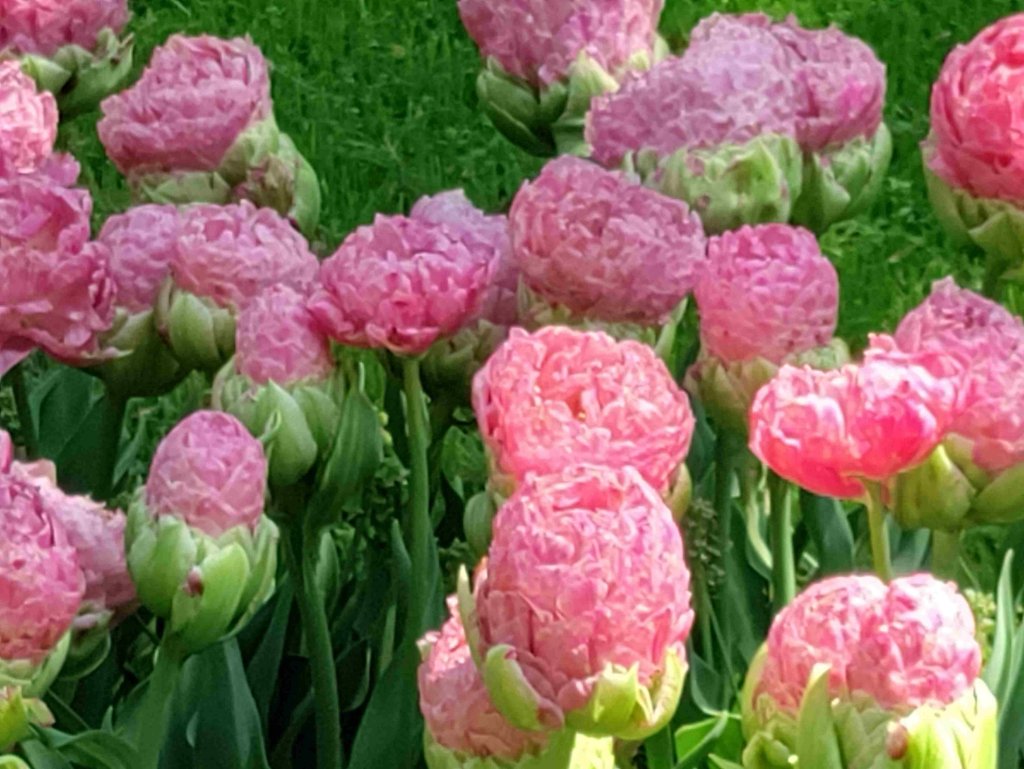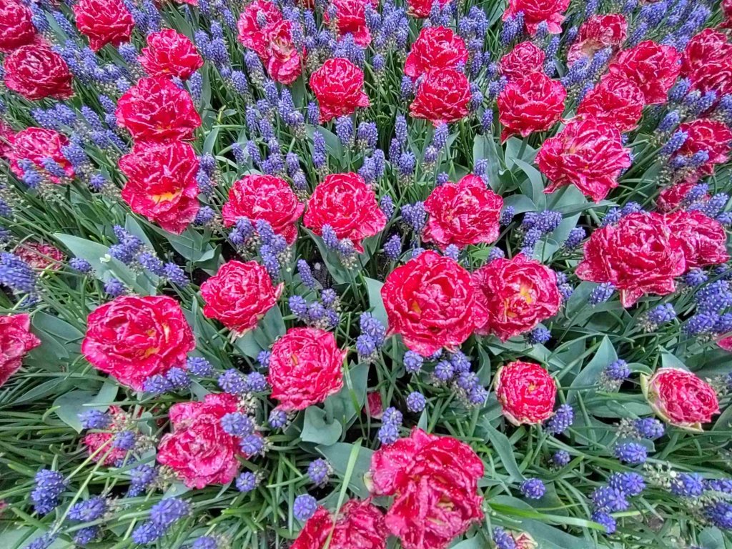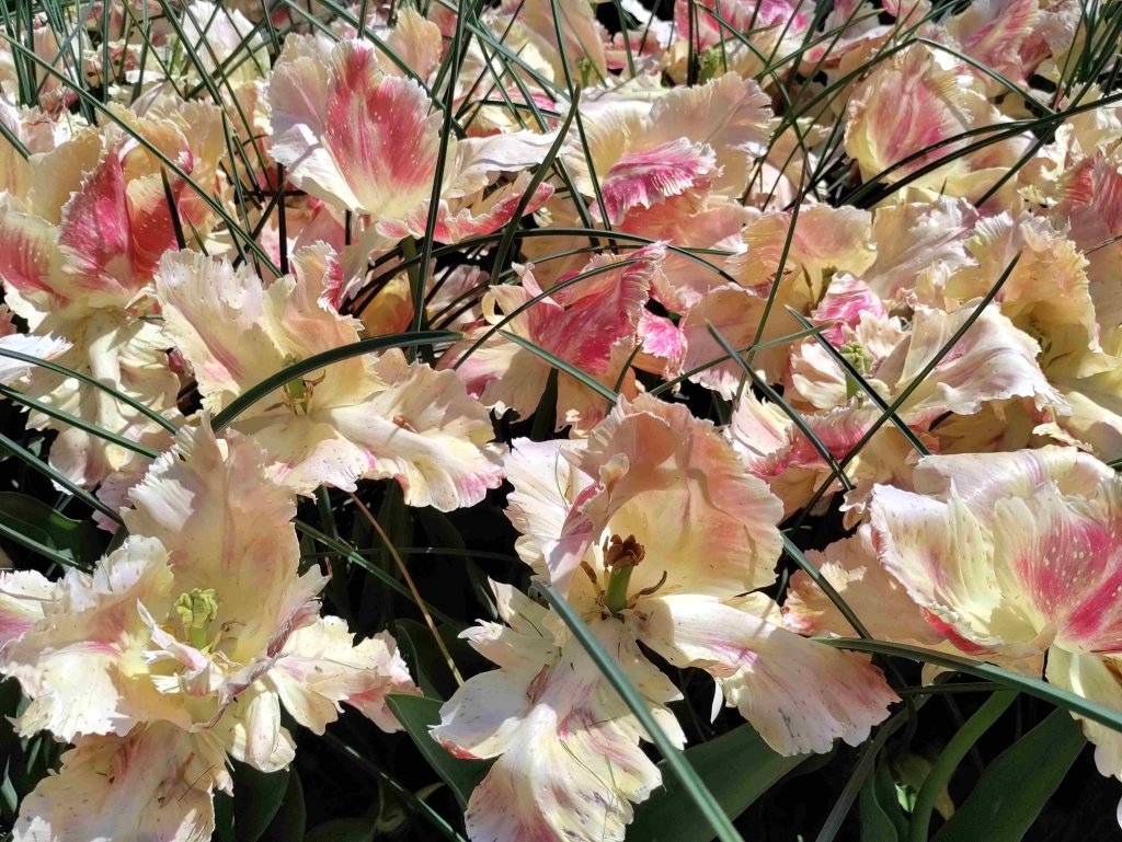 The best time to visit the gardens is about 4 weeks previously so there’s lots of beds with stalks and no flower heads. But we are not disappointed as we wander around as there’s plenty of flowers in various stages and some of the overblown tulips are absolutely gorgeous.