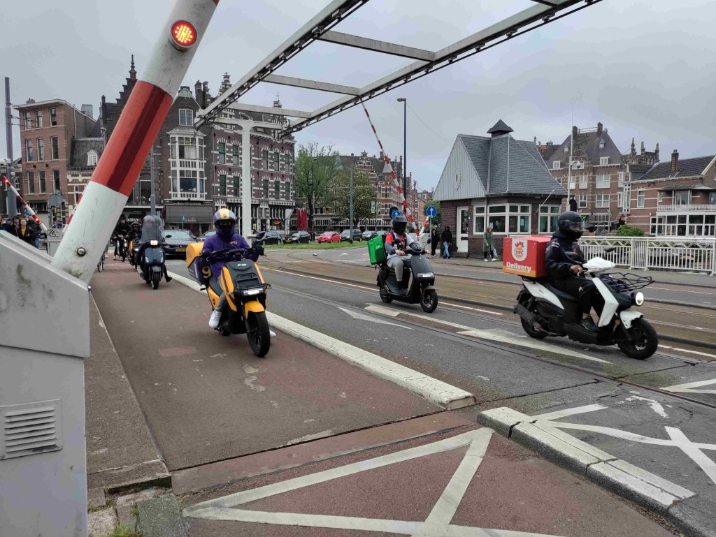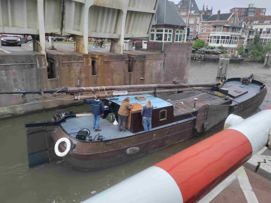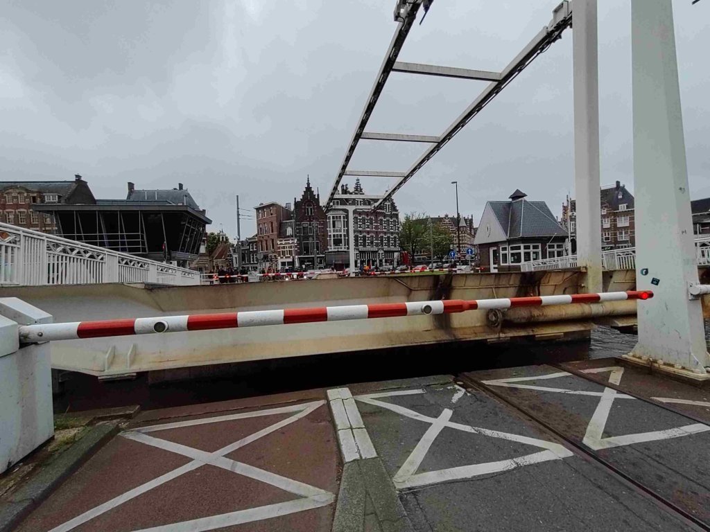 Early evening we wander down to Delfshaven, the historic part of Rotterdam. Have to wait whilst the bridge over the river lifts up to let a couple of boats out.