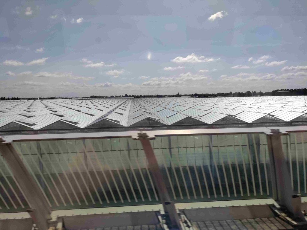 Tram for me to Rotterdam station the next morning, walk for the rest and the train to Schiphol airport. On the way we pass acres of greenhouses.