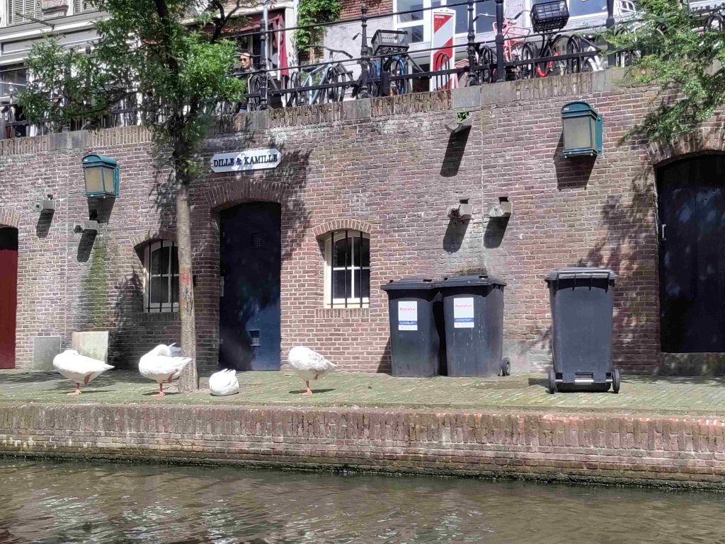 You can’t visit the Netherlands without getting on the water so we take an hour’s canal cruise. The old canal is very interesting but the rebuilt bit not so much. In the 60’s part of it was filled in to make a motorway through the city but it was restored after a referendum in 2002 and the canal once again circles the city centre at one point travelling under a shopping mall.