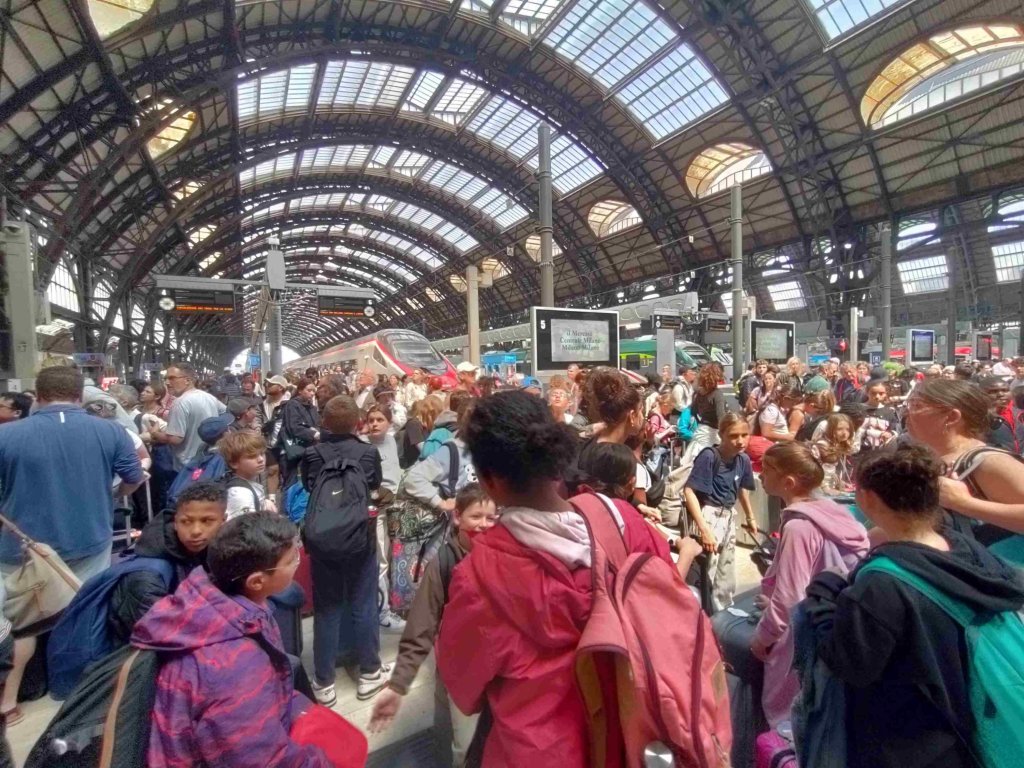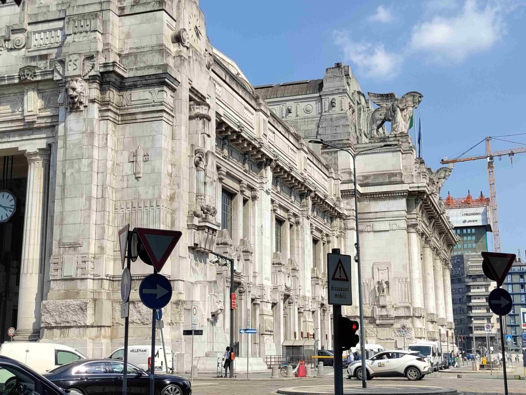 Milano Centrale station is teeming with people. The express train from the airport lands on platform one which is narrow and so it takes a while for us to escape the huge station.