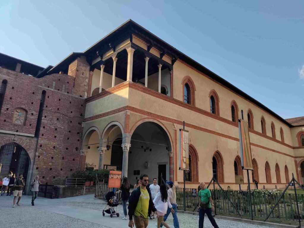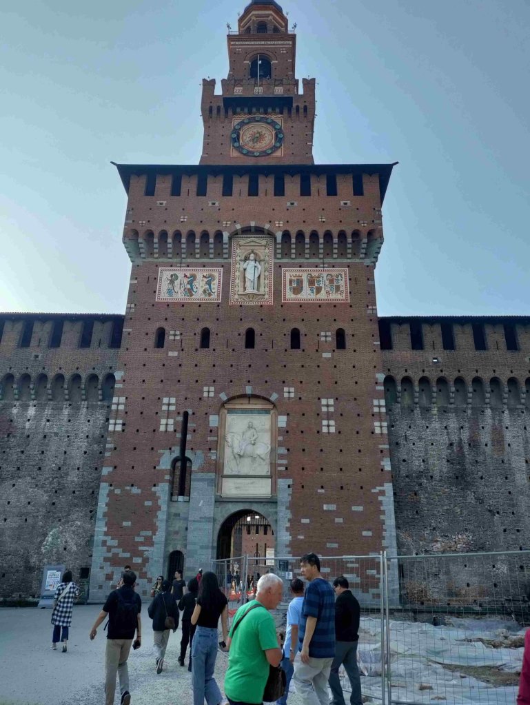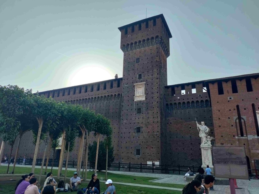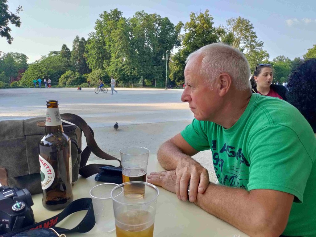 Onto Castello Sforzesco which was an ever changing fortification between the 14c and 17c and is now a museum. We can wander through free and then out the other side into Sempione Park. We find a lovely bar sitting under an umbrella and enjoy cold beer and people watching for an hour.
