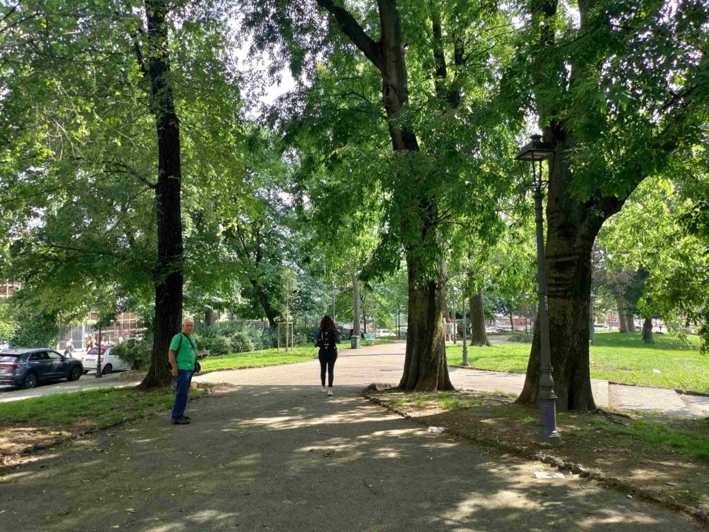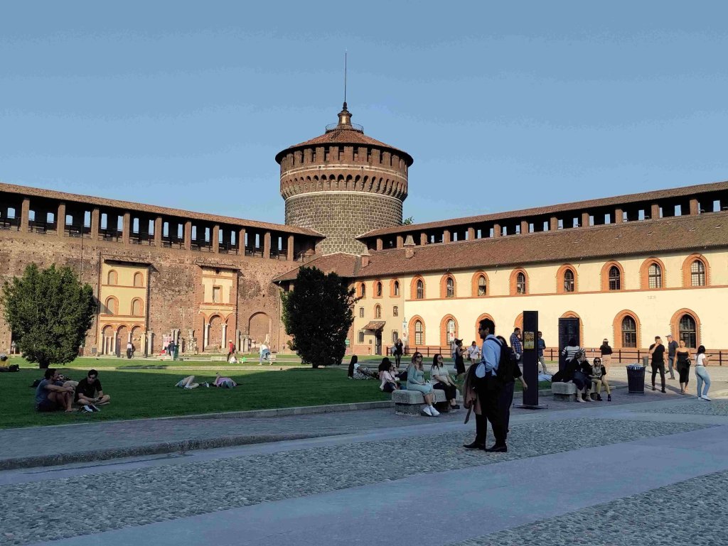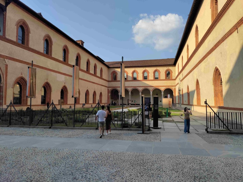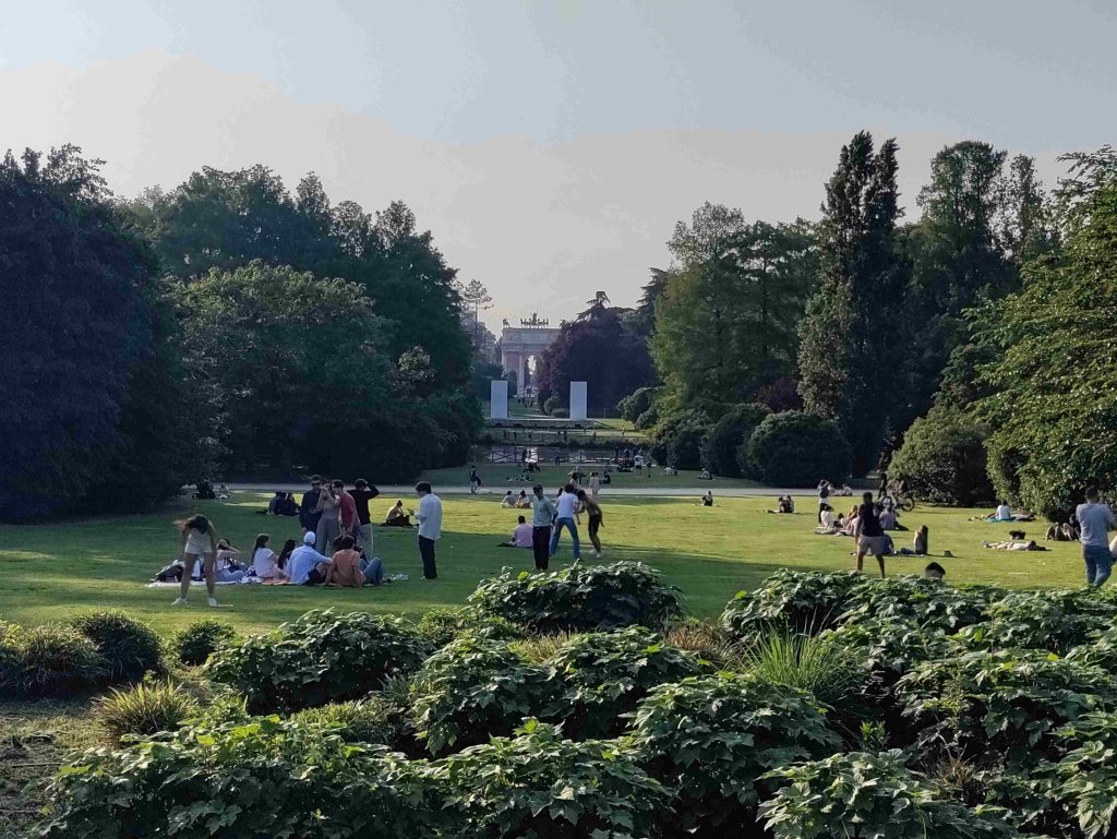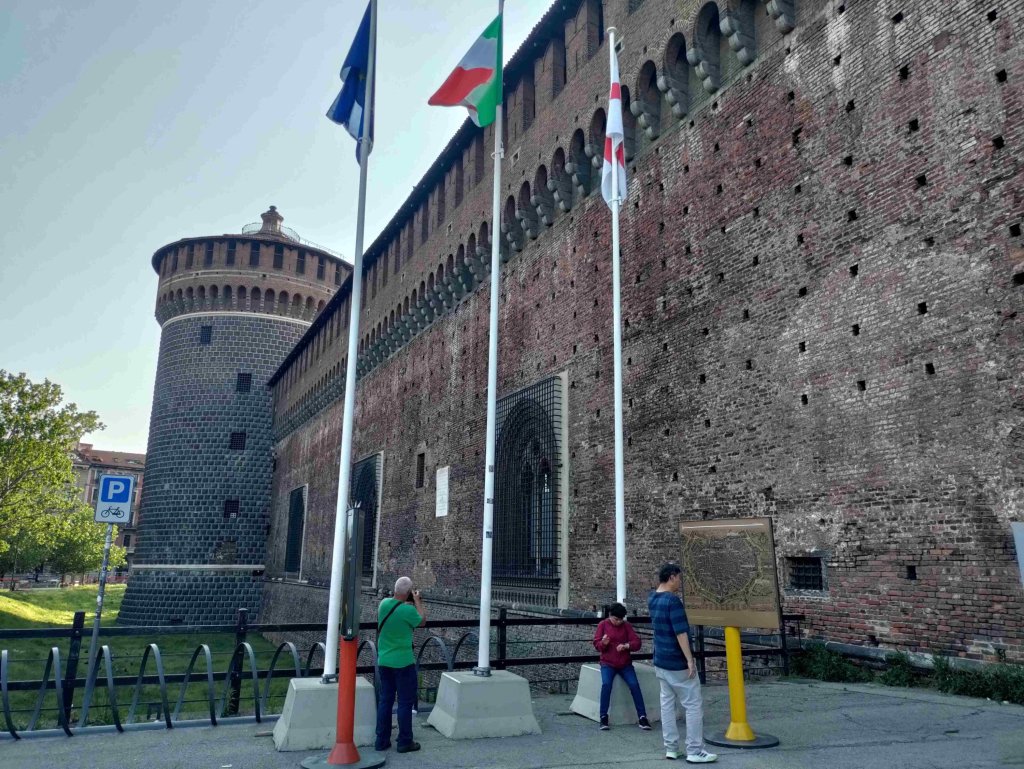 Onto Castello Sforzesco which was an ever changing fortification between the 14c and 17c and is now a museum. We can wander through free and then out the other side into Sempione Park. We find a lovely bar sitting under an umbrella and enjoy cold beer and people watching for an hour.
