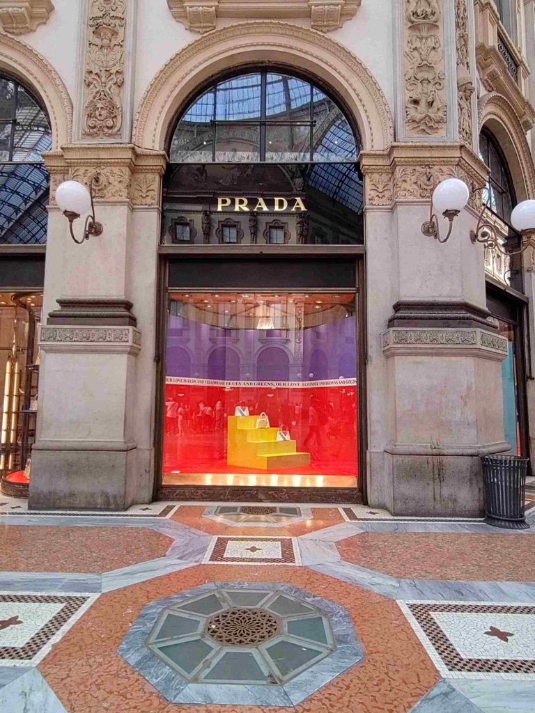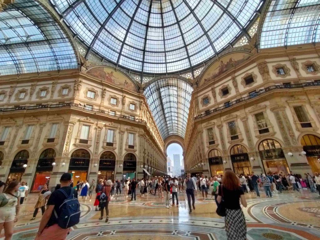 Onwards through the city and towering buildings until we arrive at the wonder that is Galleria Vittorio Emanuele II. It’s a huge marbled arcade full of very expensive shops and restaurants. We enjoy window shopping only.